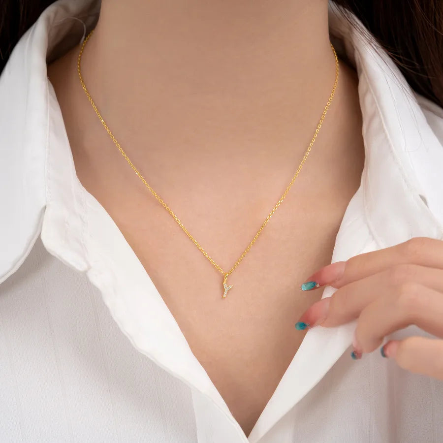 English full diamond 26 letter pendant necklace S925 sterling silver your name Joker jewelry clavicle chain - 26 letter combinations / 18k gold