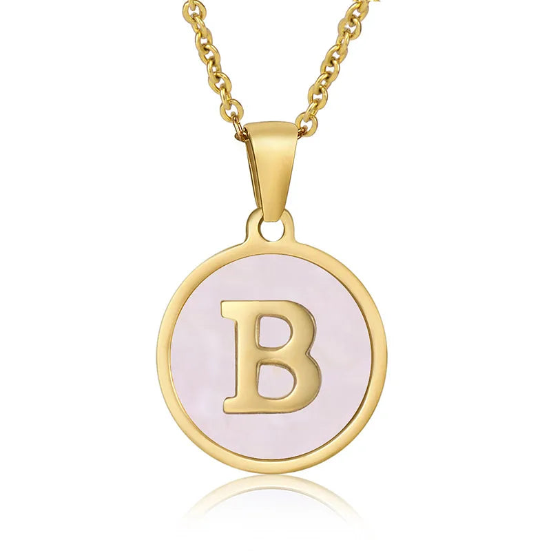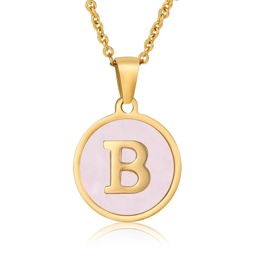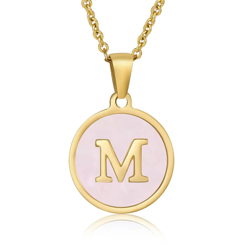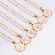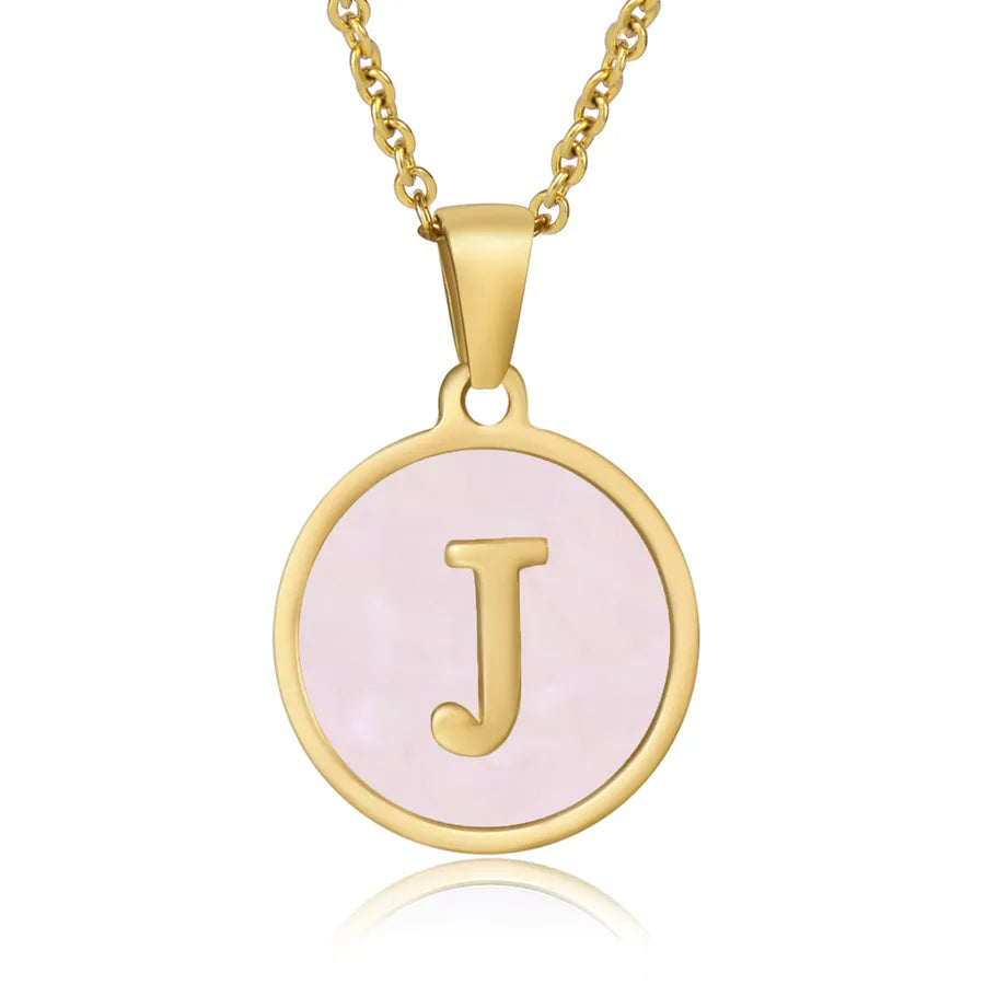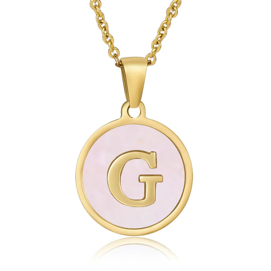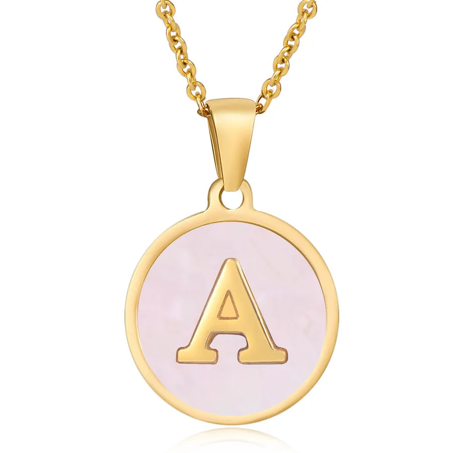 Wholesale Jewelry Simple Style Round Letter 304 Stainless Steel Shell 18K Gold Plated Gold Plated Pendant Necklace - Gold A (Including Chain)