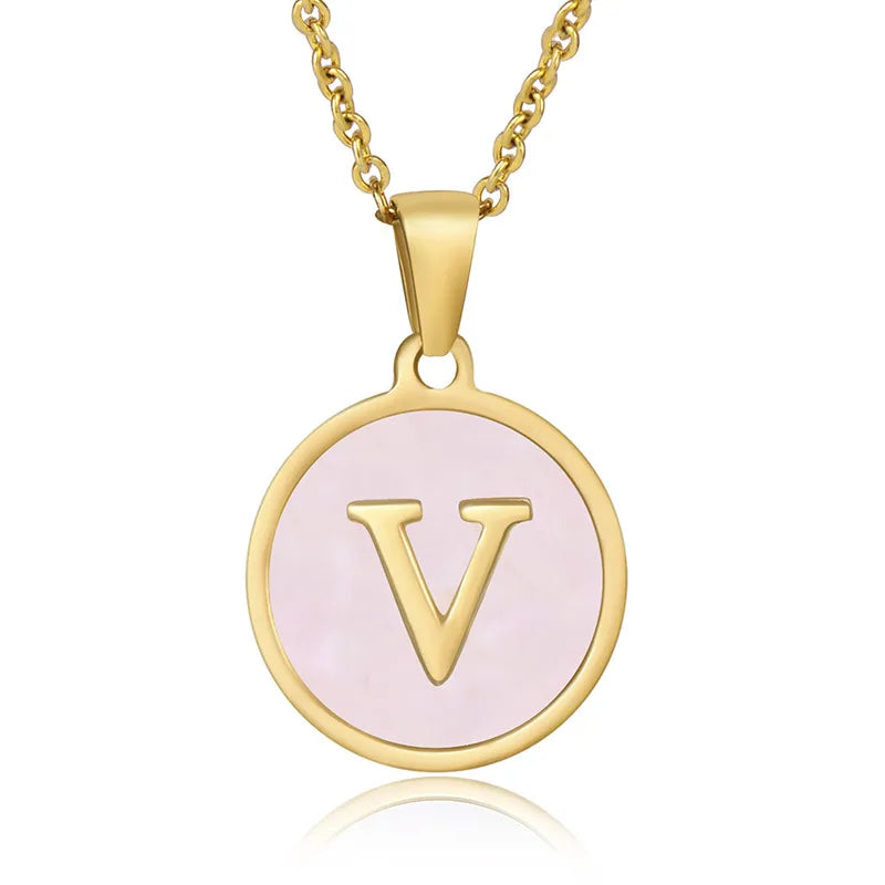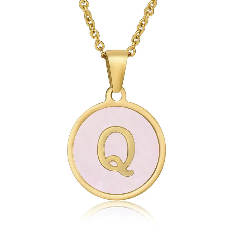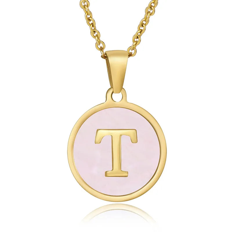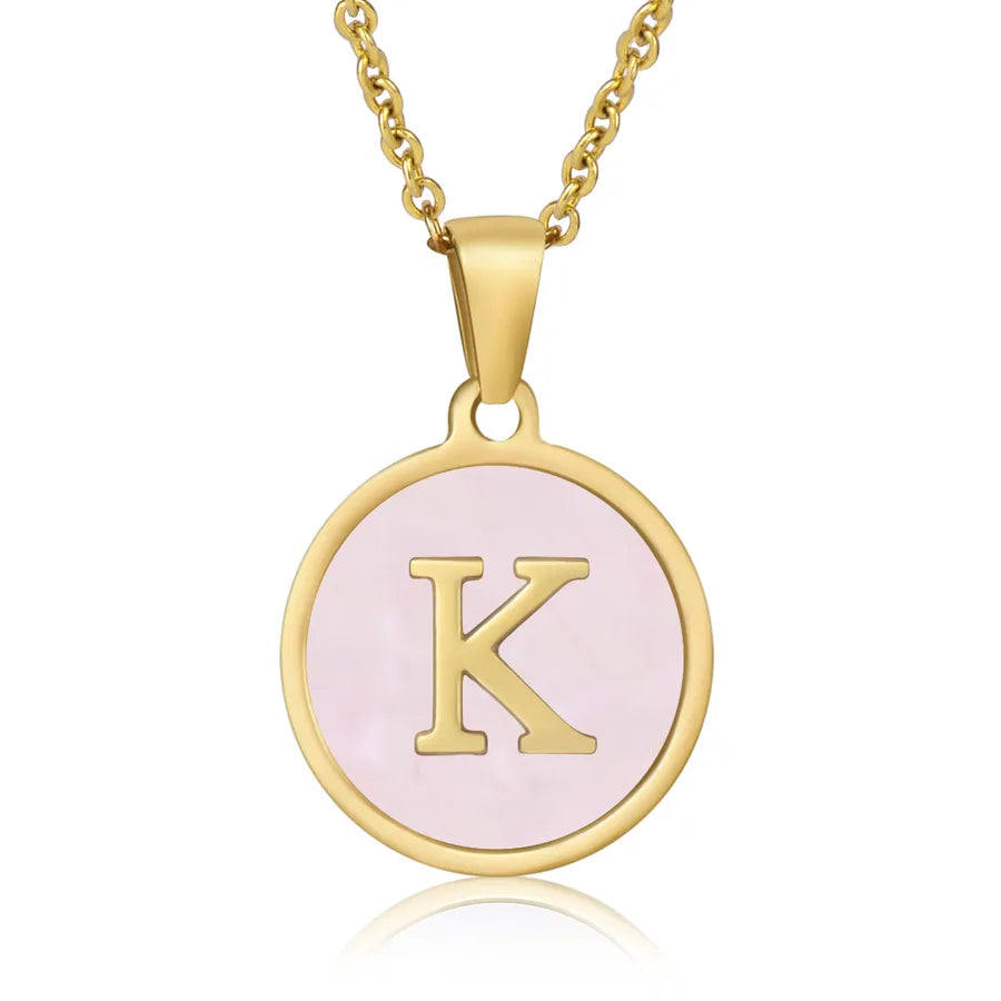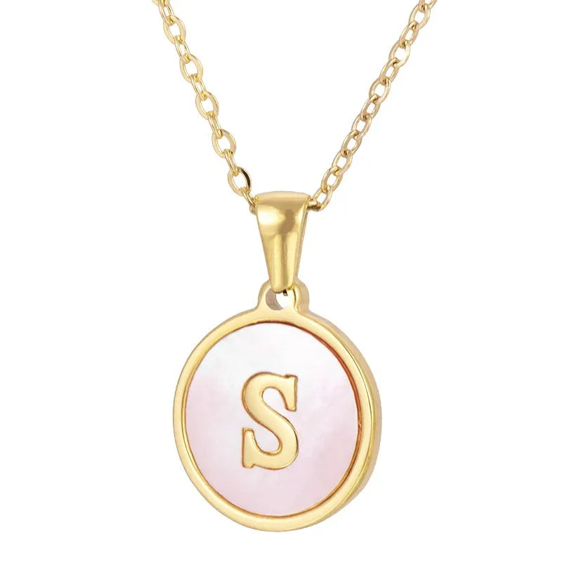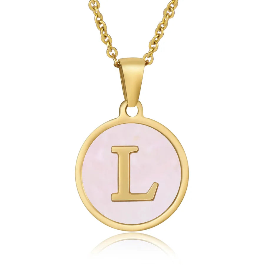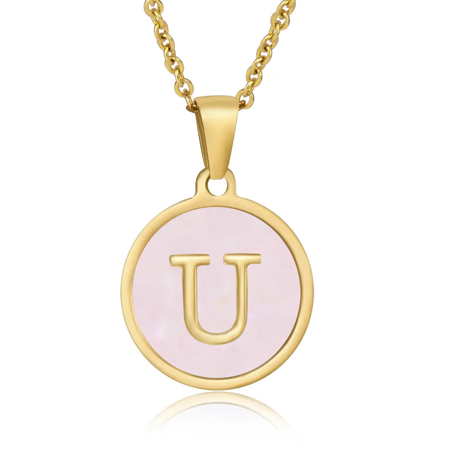 Wholesale Jewelry Simple Style Round Letter 304 Stainless Steel Shell 18K Gold Plated Gold Plated Pendant Necklace - Gold A (Including Chain)