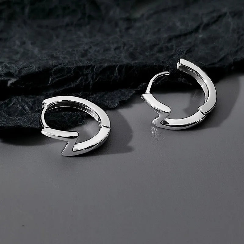 Cool Men's Fashion Lightning Ear Cuff Hip Hop Style Trendy Stud Earrings Geometric Pattern Copper Material Minimalist Jewelry - C428 Lightning Earrings