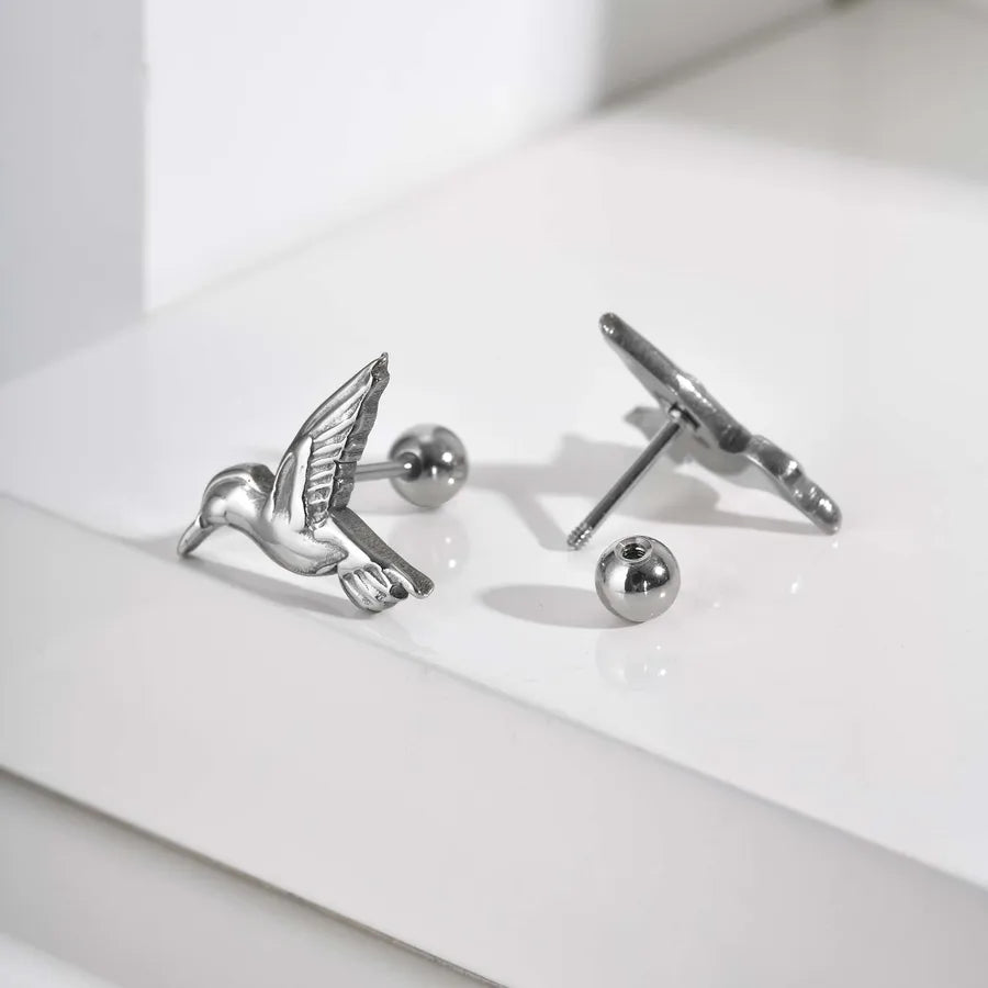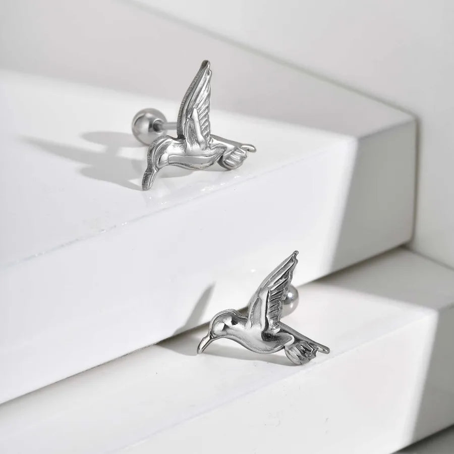 Cute Simple Style Cool Style Hummingbird 201 Stainless Steel Men's Ear Studs