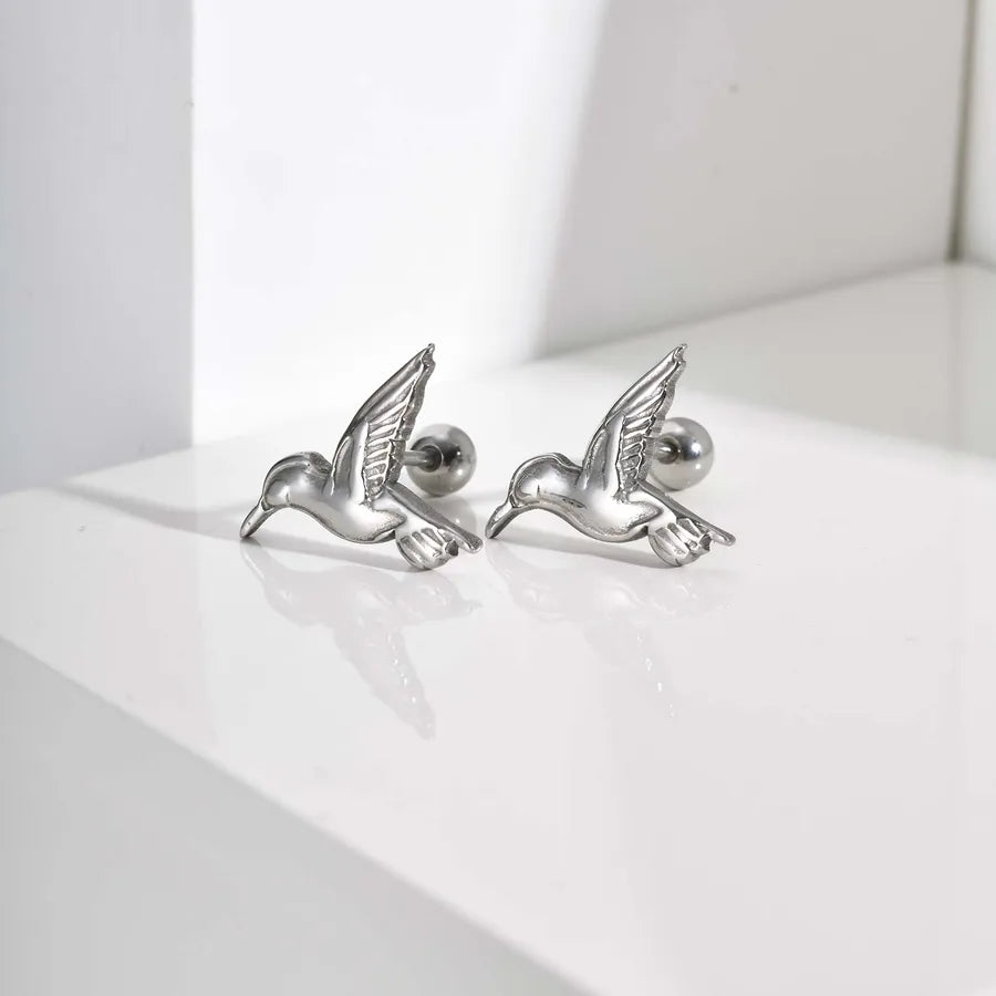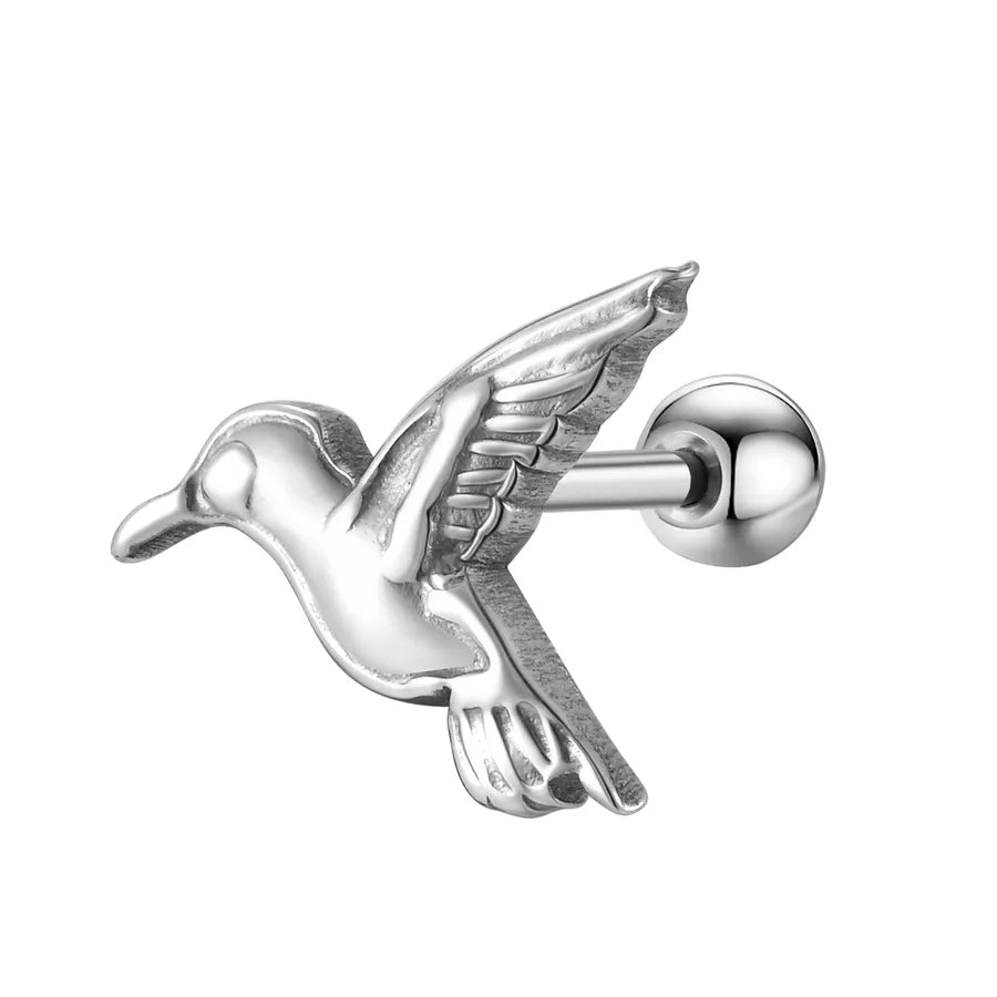 Cute Simple Style Cool Style Hummingbird 201 Stainless Steel Men's Ear Studs - Steel Color / A Piece