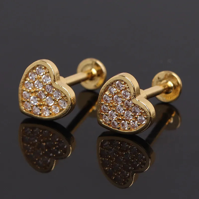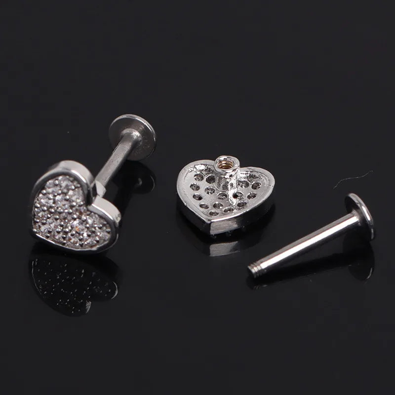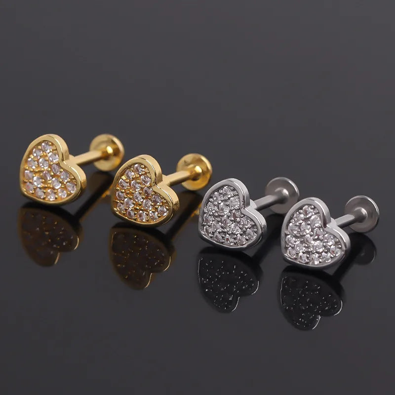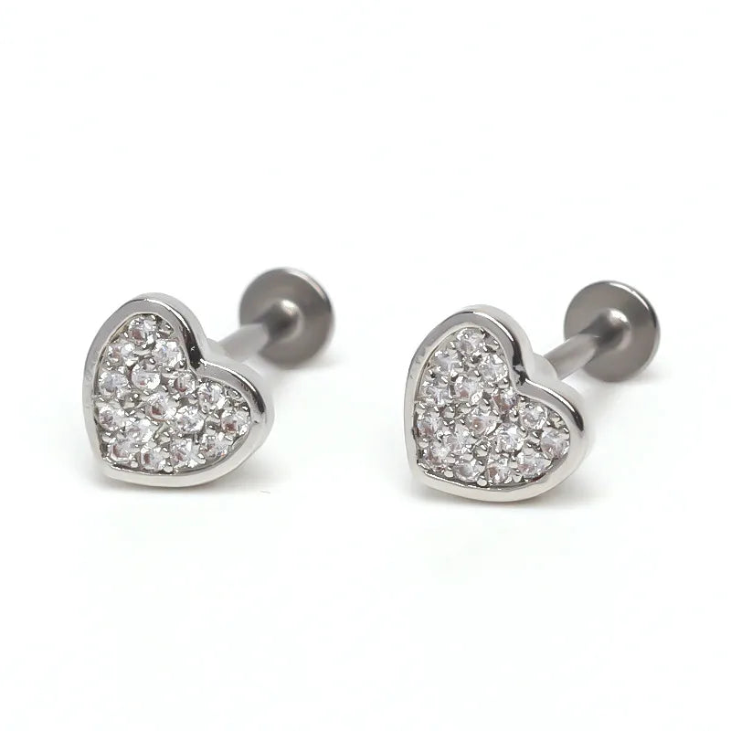 Fashionable Stainless Steel Casting Heart Ear Studs Trendy New Style Personality Jewelry Earrings Unisex Geometric Pattern - Silver (One Piece)