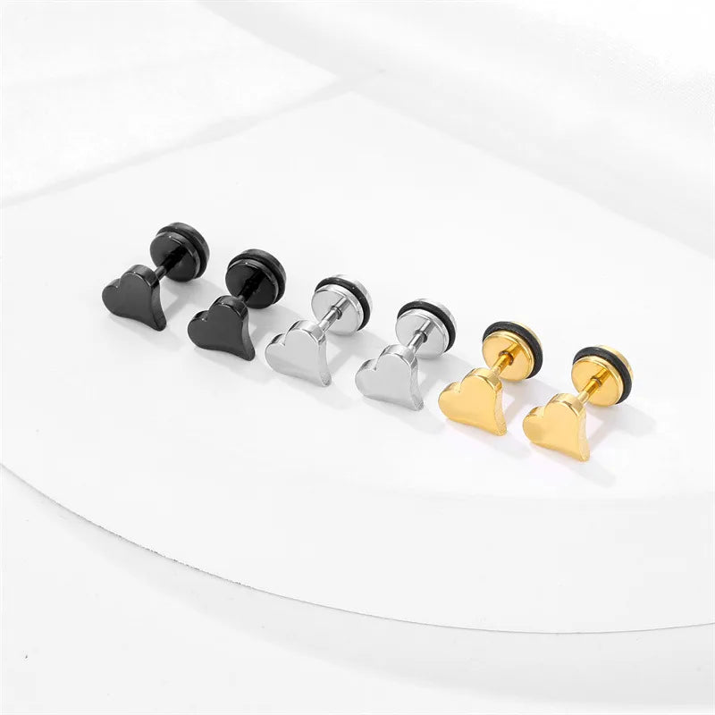 Fashionable Stainless Steel Heart Shaped Ear Cuffs Unisex High End Casting Ear Studs Jewelry Geometric Pattern Round Plating