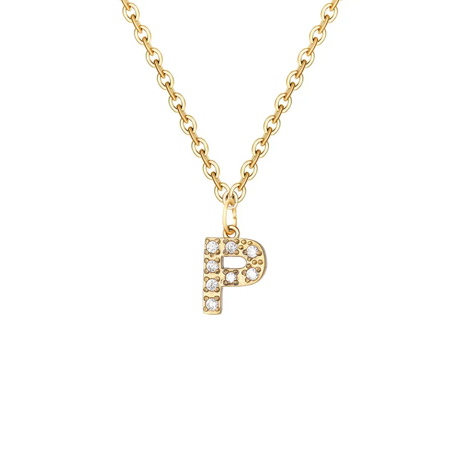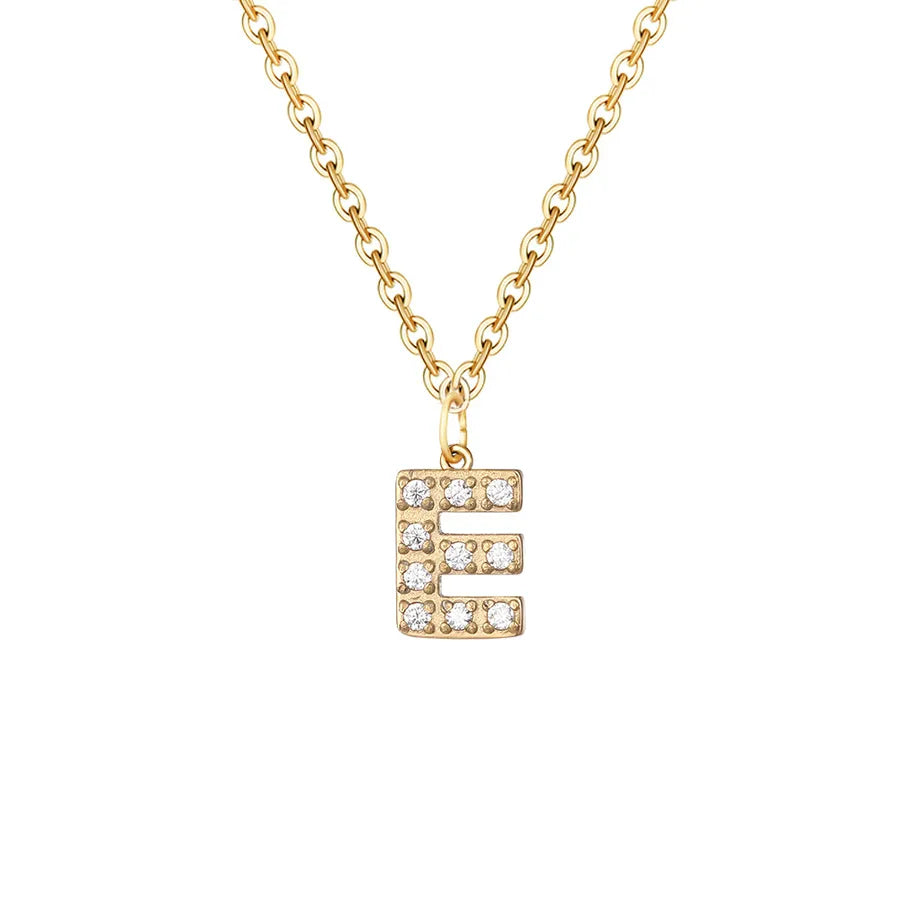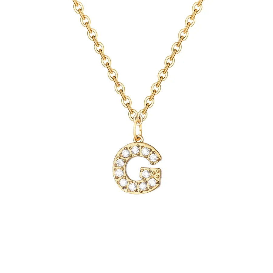 lady letter stainless steel titanium steel inlay artificial gemstones 14k gold plated pendant necklace - B-14K Gold,, Weight: about 2.3G