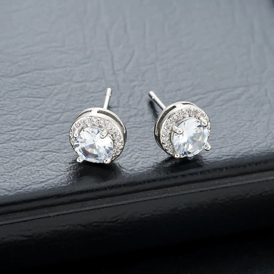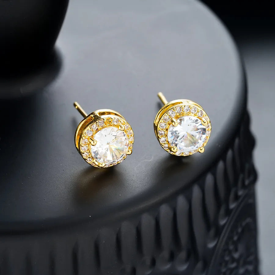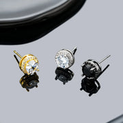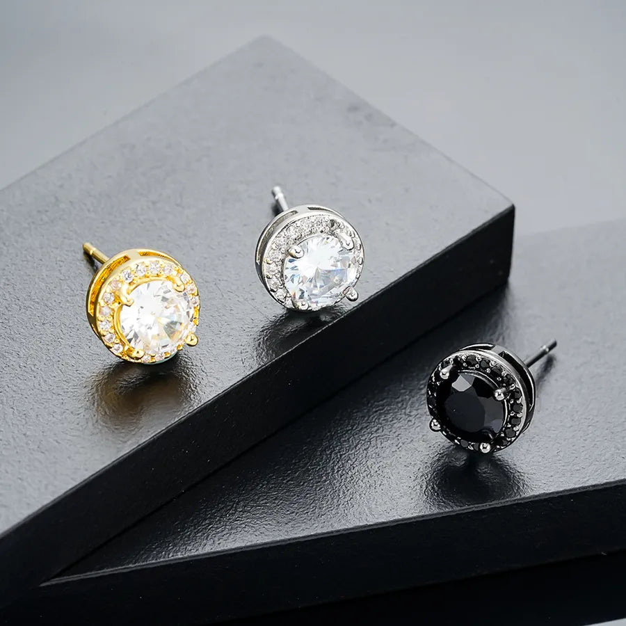 Trendy Men's Full Diamond Ear Cuff Earrings Luxury Minimalist Design Unique Personality Geometric Pattern Copper Jewelry - X155-D (Gold Zircon Earrings) Pair