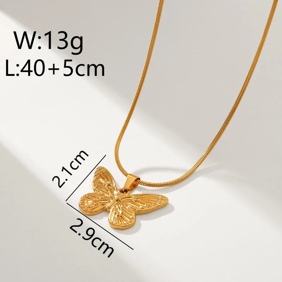 Wholesale Jewelry Hip-Hop Vacation Punk Butterfly 304 Stainless Steel 18K Gold Plated snake chain Pendant Necklace - Butterfly Necklace