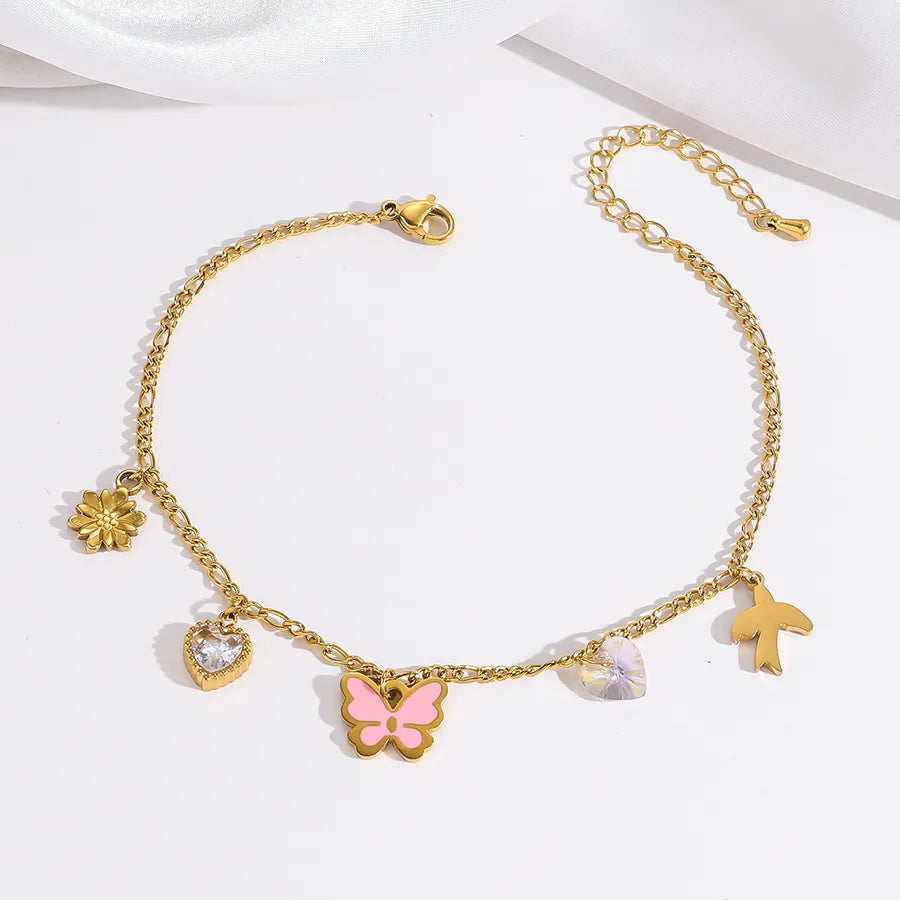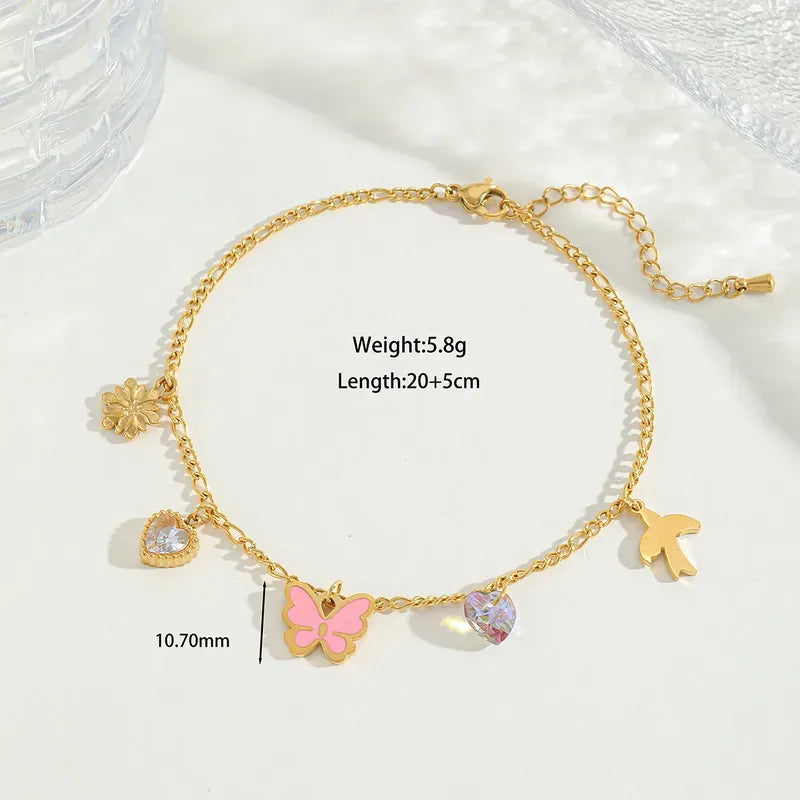 18K Gold Plated Butterfly Flower Heart Pendant Ankle Chain Stainless Steel Women's Sexy Beach Party Date Holiday Jewelry