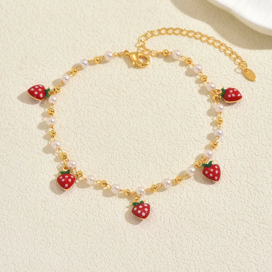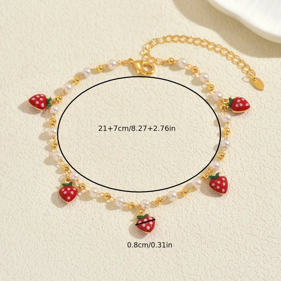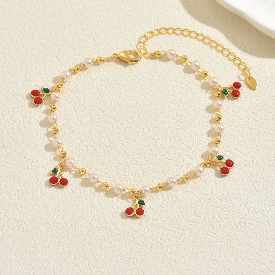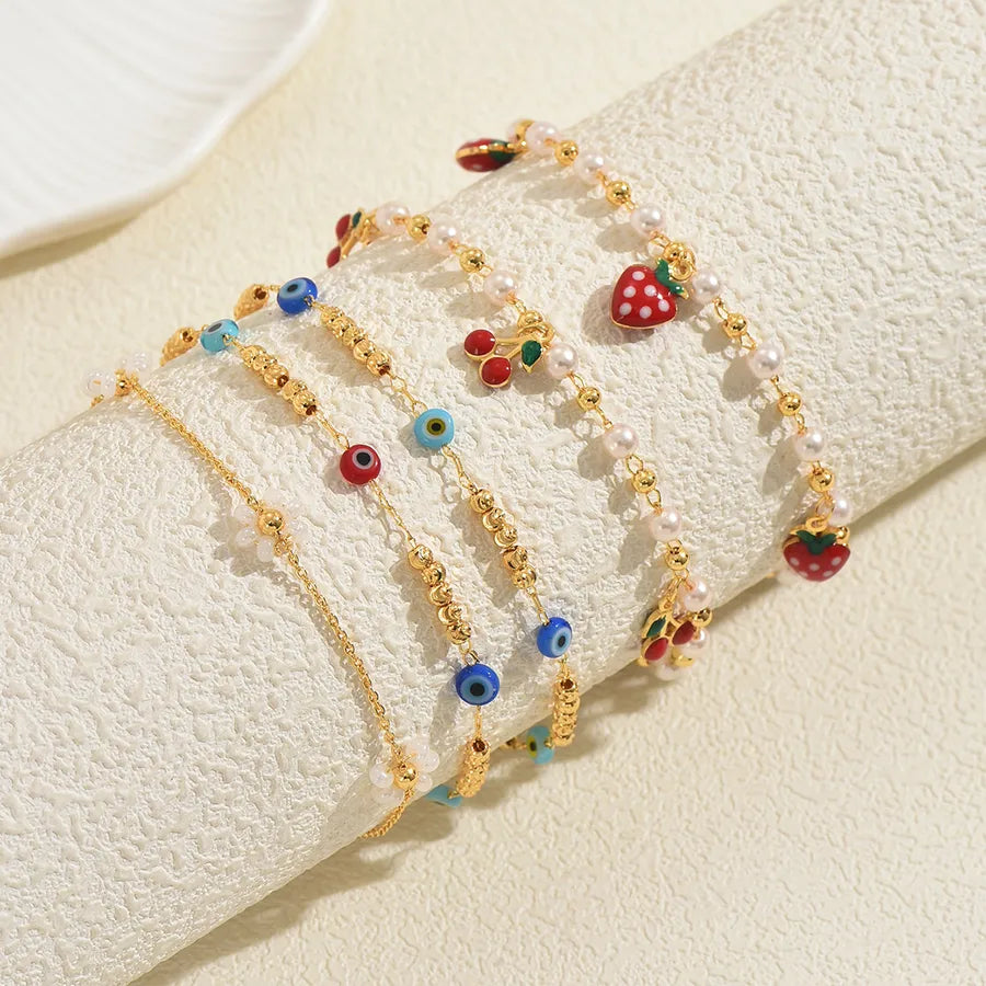 Beach Casual Fashion Pearl Imitation Cherry Strawberry Devil's Eye Bracelet Plastic Copper Material Ins Style Family Gathering Party Occasion - Average Size / Multicolor / A