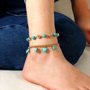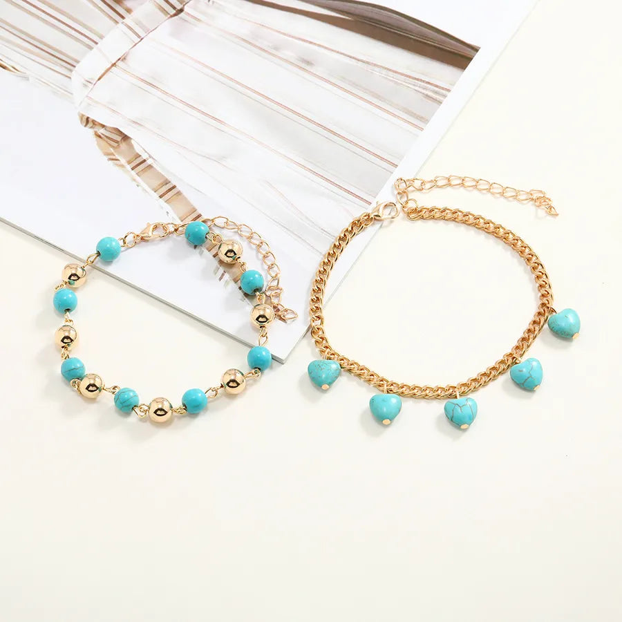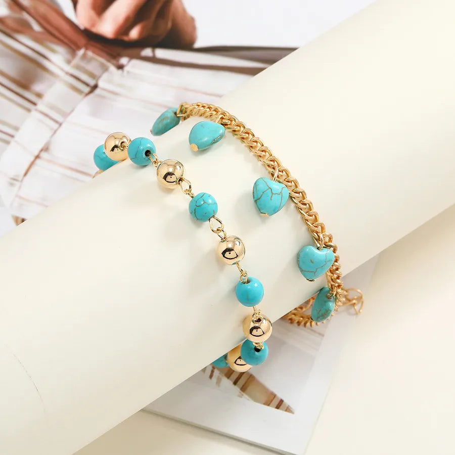 Bohemian Double Layer Heart Shape Foot Bracelet Women's New Style Turquoise Foot Jewelry Sales Hot - Lake Blue