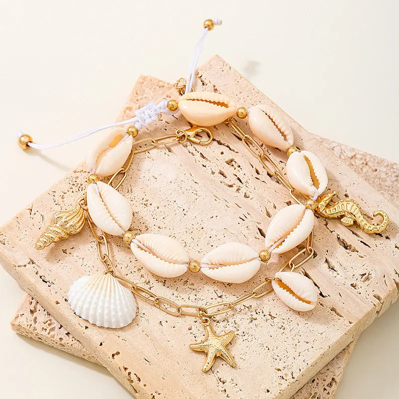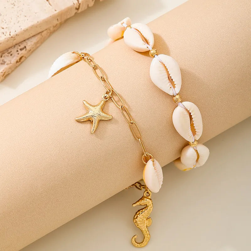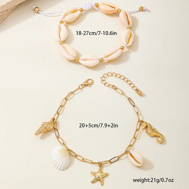 Bohemian Ocean Style Metal Starfish Tassel Pendant Drop Earrings Layering Women's Ankle Bracelets Natural Shell Charm