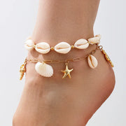 Bohemian Ocean Style Metal Starfish Tassel Pendant Drop Earrings Layering Women's Ankle Bracelets Natural Shell Charm - Gold Anklet