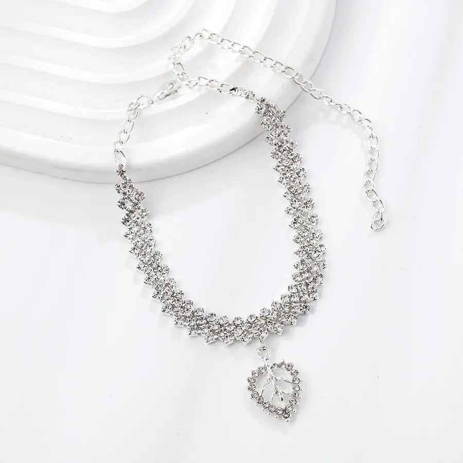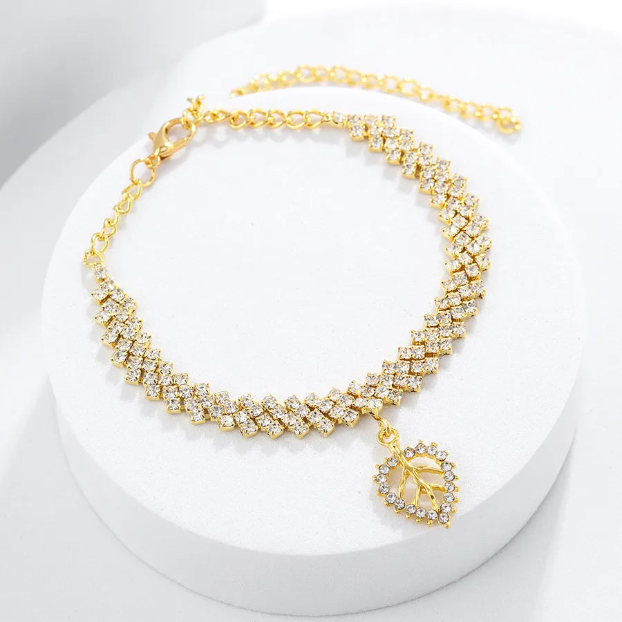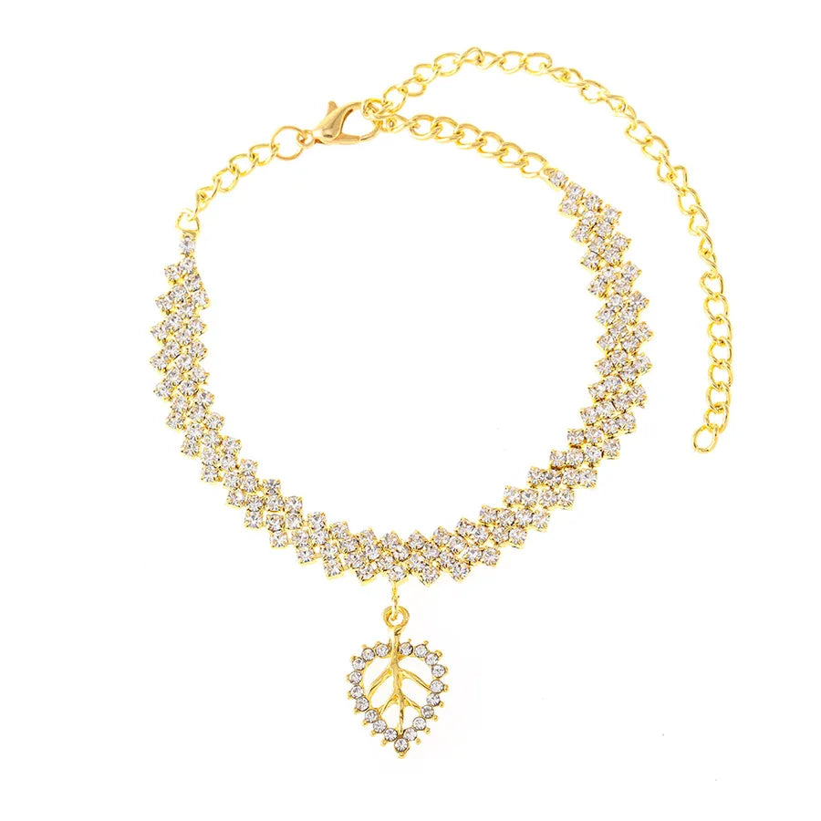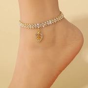 Fashionable Beach Diamond Embedded Rhombus Ankle Bracelet Leaf Pendant Foot Jewelry Chain For Women Trendy Accessory - Gold