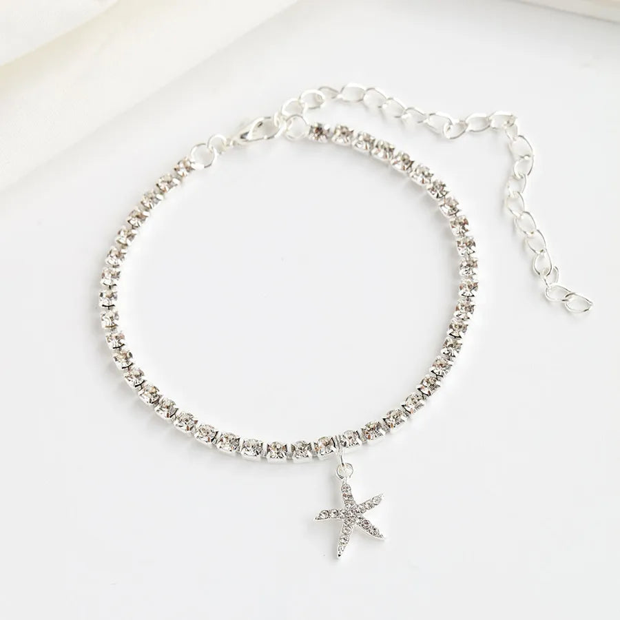 Fashionable Bohemian Bracelet Beachy Starfish Pendant Shiny Rhinestone Sandals Jewelry Women's Stylish Accessory