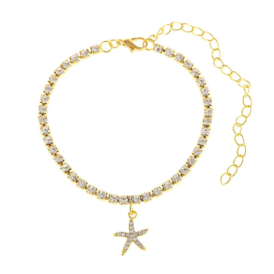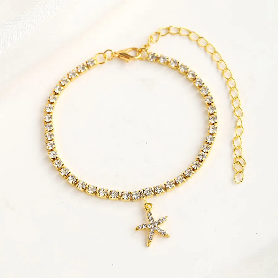 Fashionable Bohemian Bracelet Beachy Starfish Pendant Shiny Rhinestone Sandals Jewelry Women's Stylish Accessory - Gold