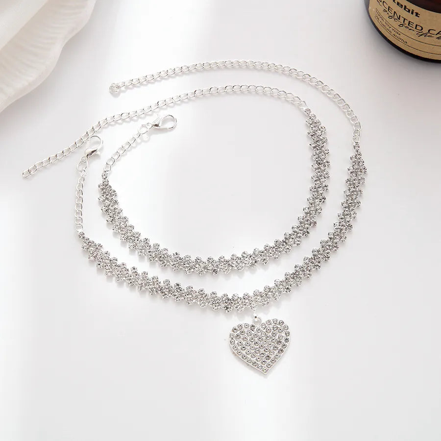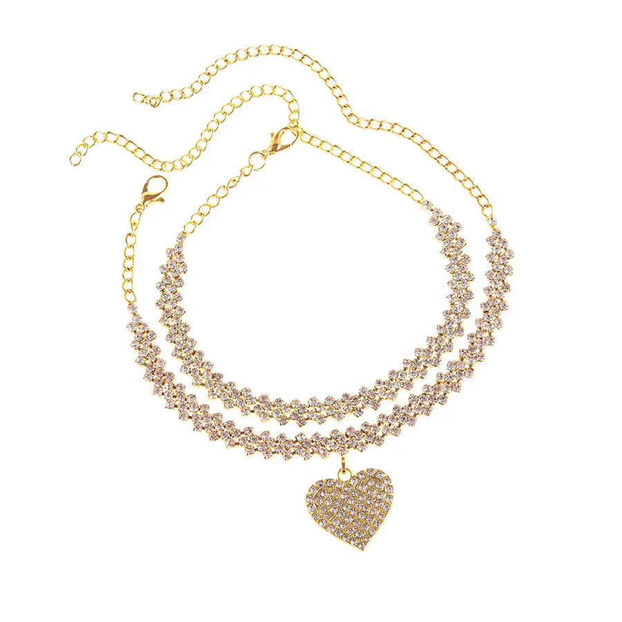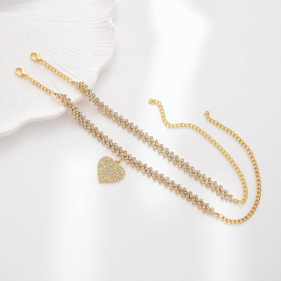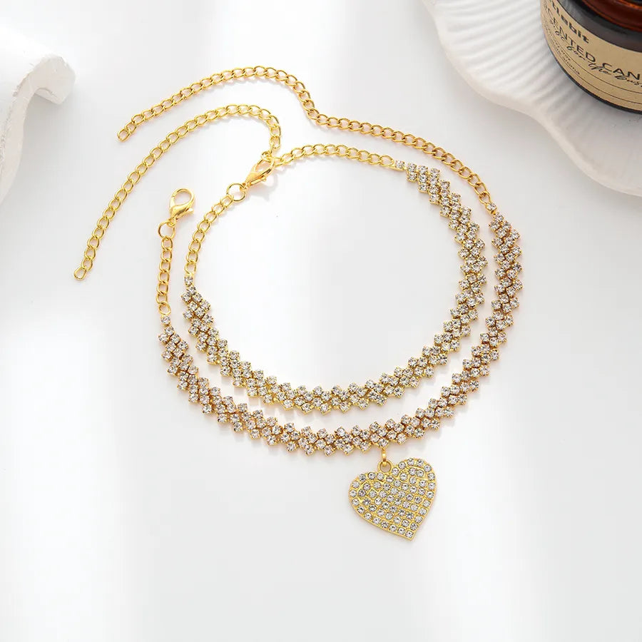 Fashionable Full Drill Heart Pendant Bracelet Popular Elements Shiny New Diamond Embedded Bracelet - Golden Set