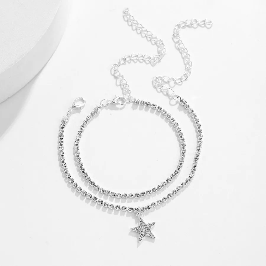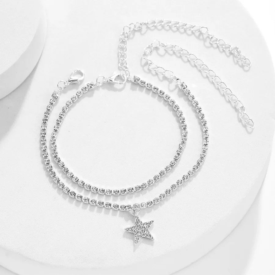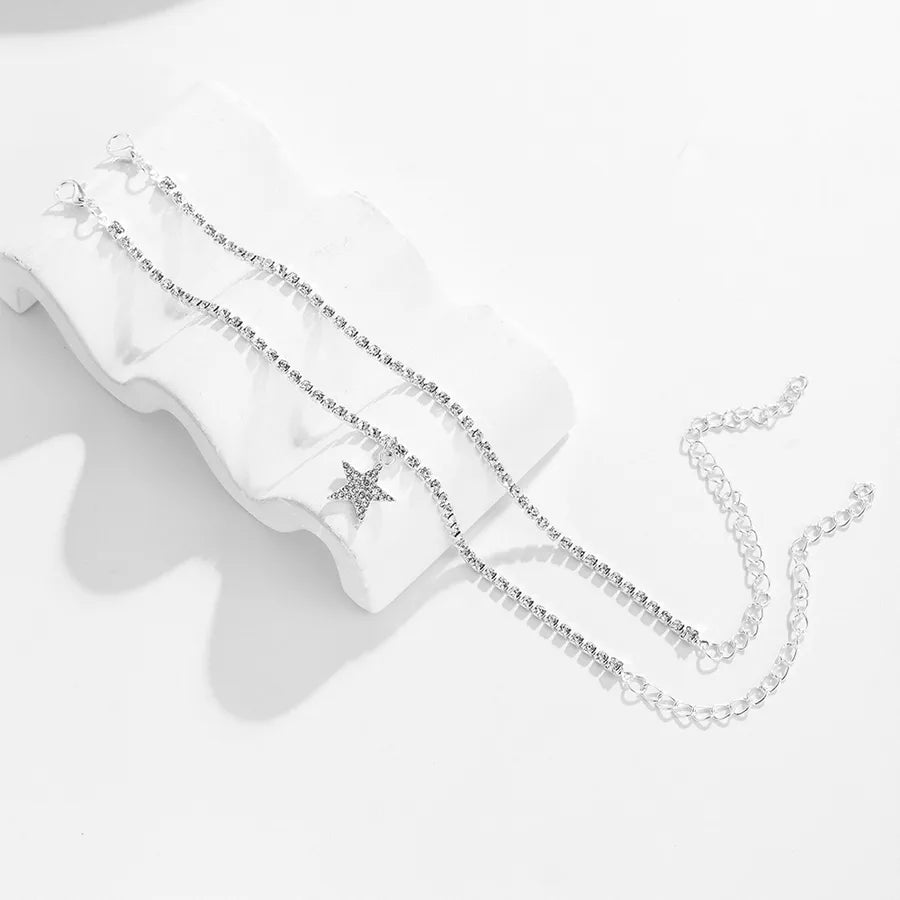Fashionable Star Pendant Ankle Chain For Women Beach Jewelry Diamond Embedded Sensation Female Footwear - Silver Set