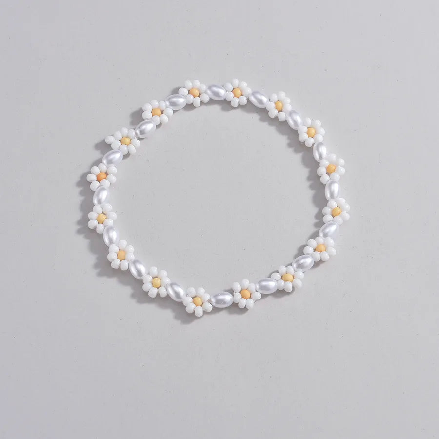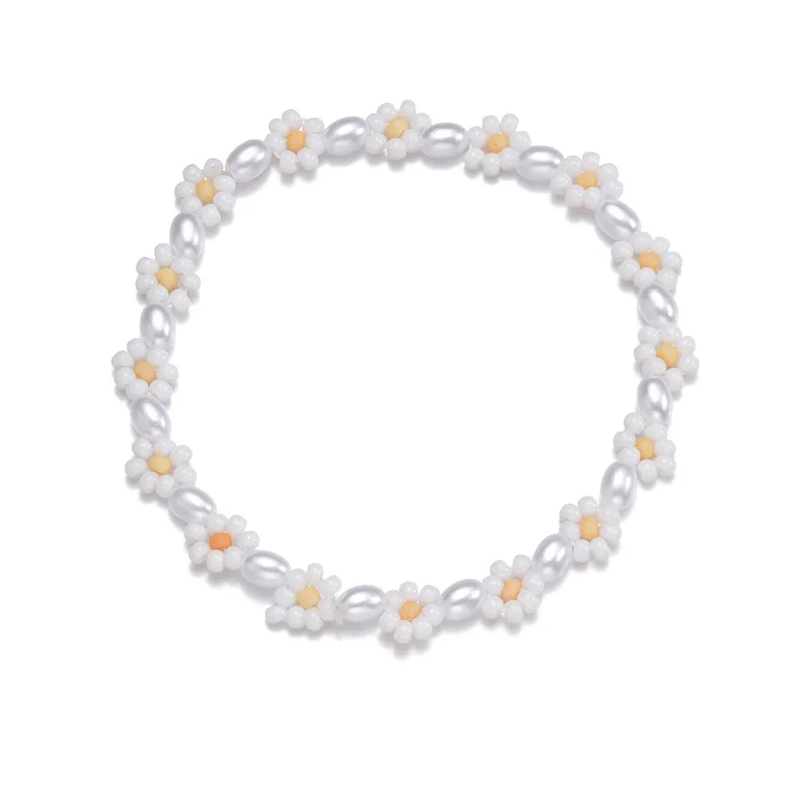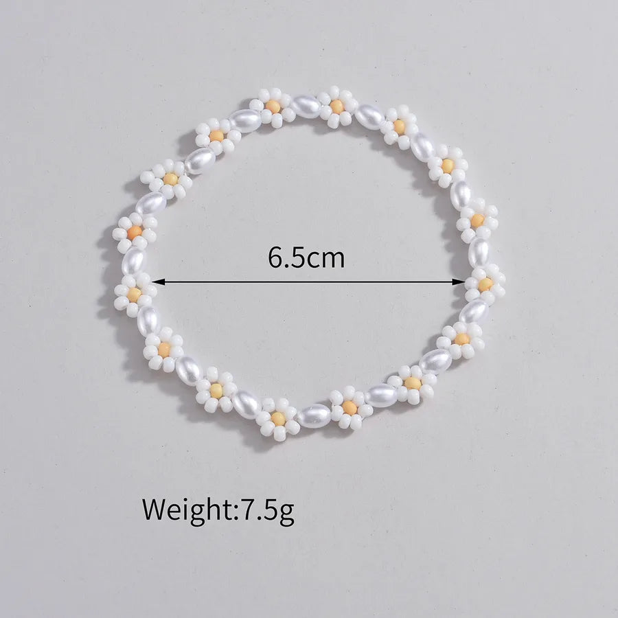 Fashionable Sweet Two-tone Bead Woven Flower Pearl Elastic Ladies Ankle Bracelet Suitable For Beach Vacation Commuting - XY-3542
