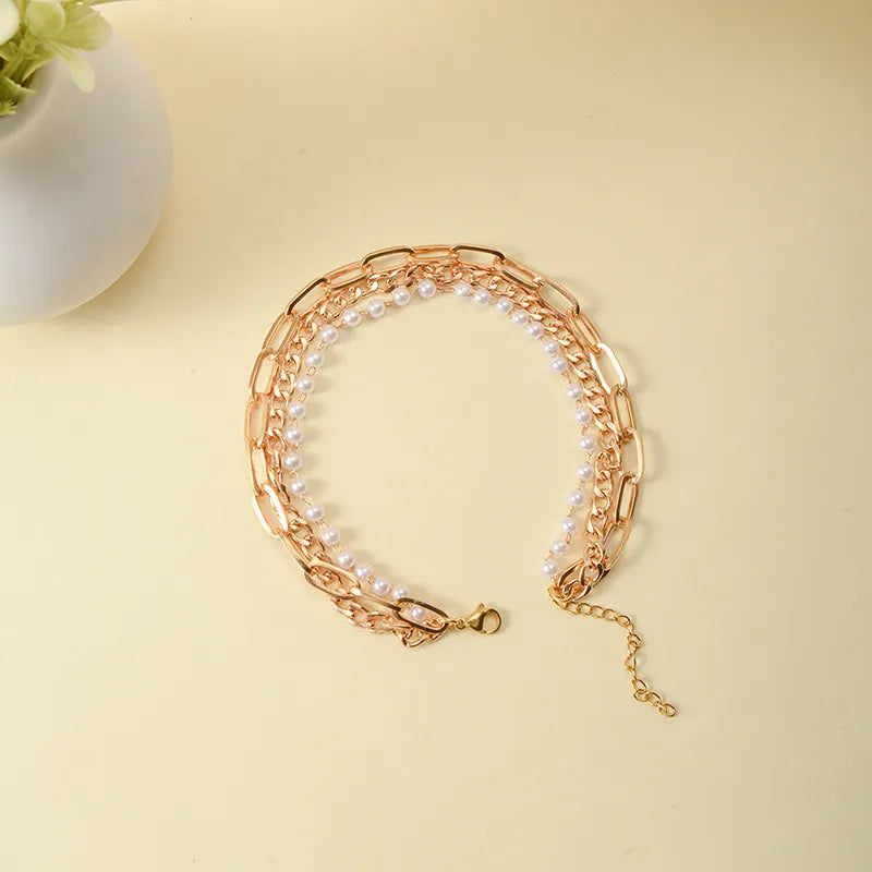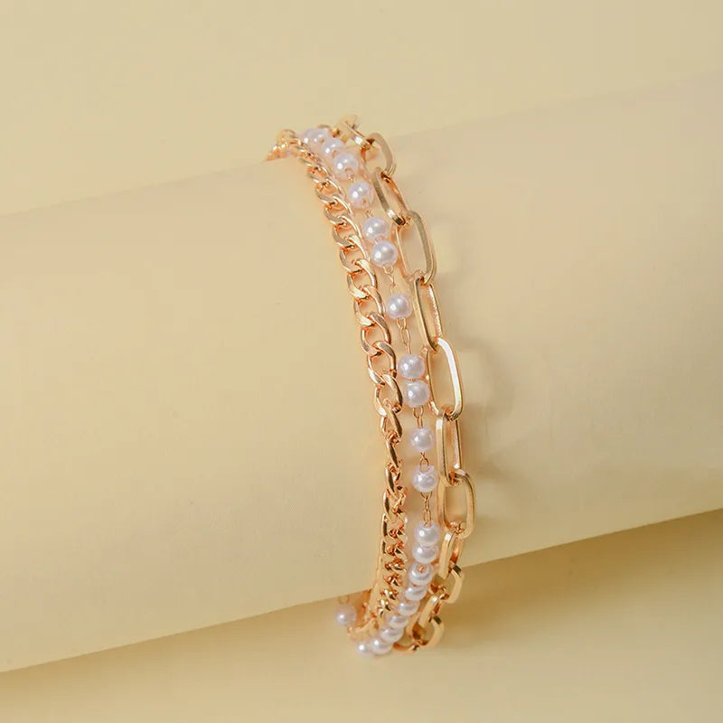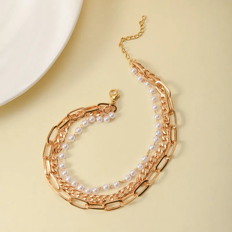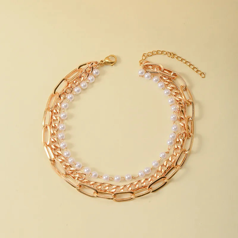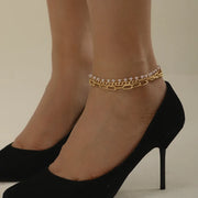 Jewelry Pearl Multi-Layer Metal Chain Simple Personality Women's Hip Hop Punk Style Ankle Bracelets - JL7343-01