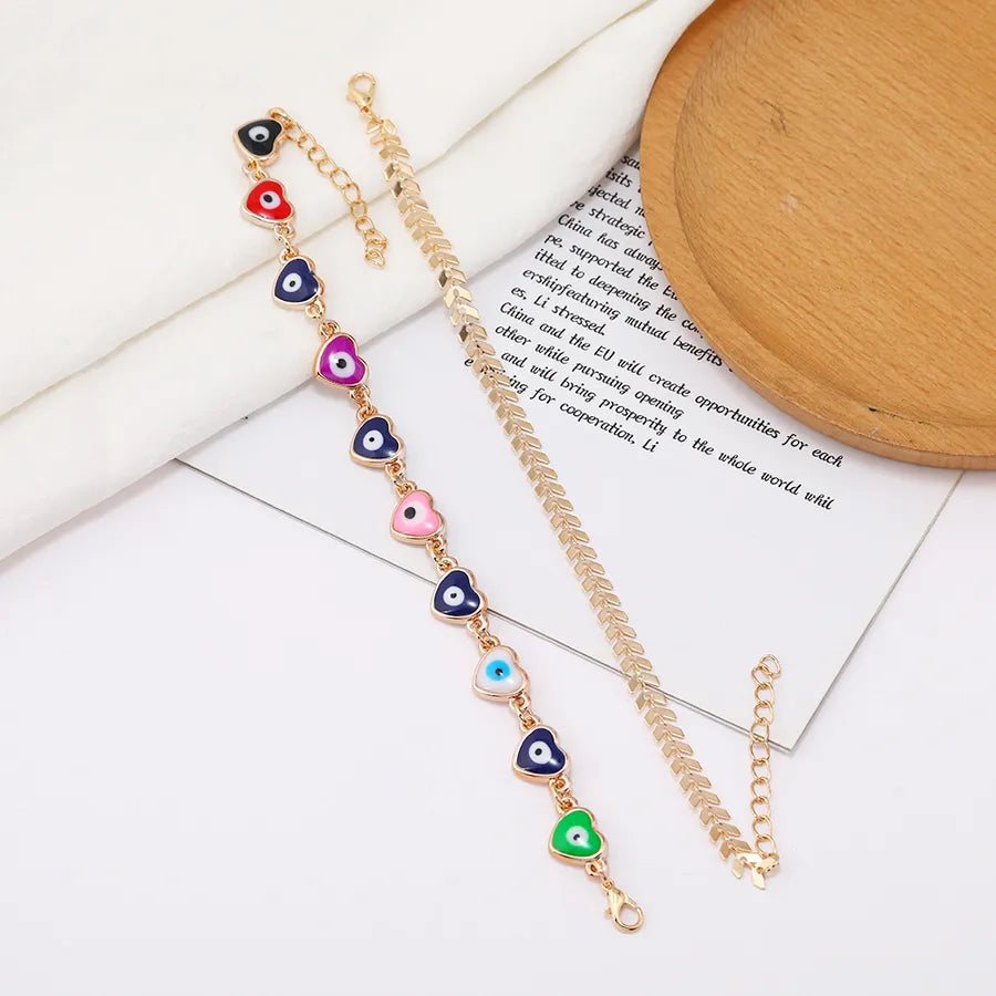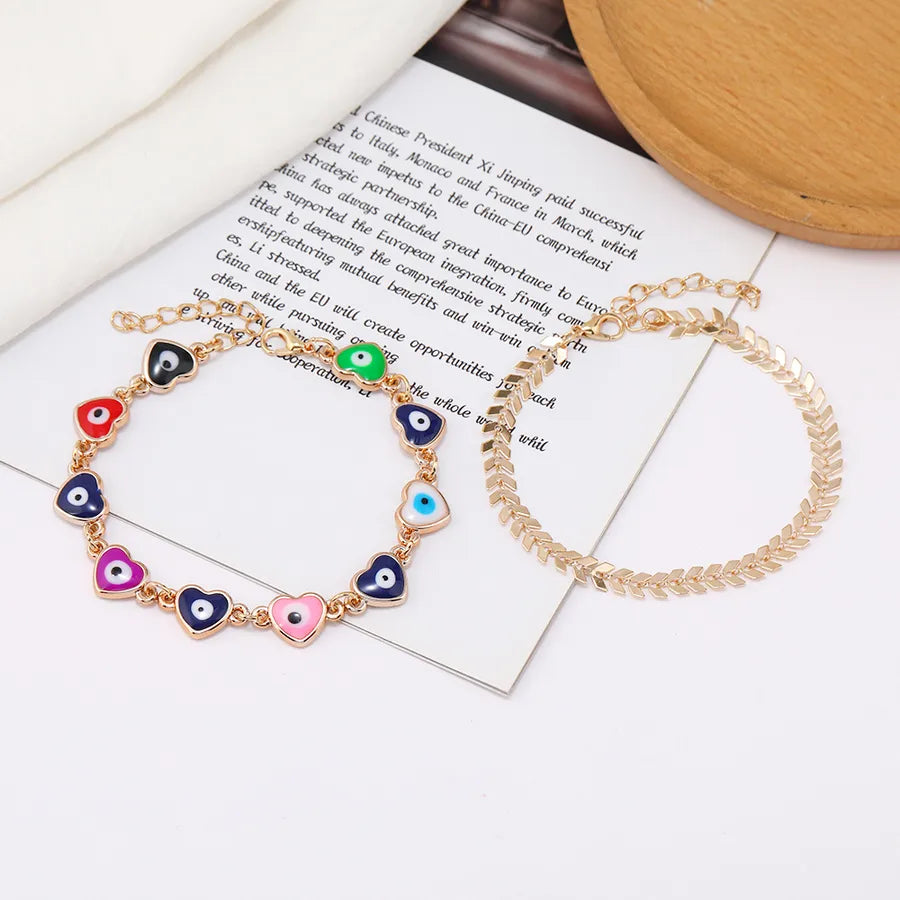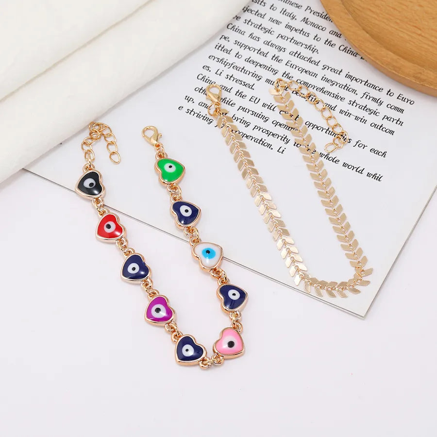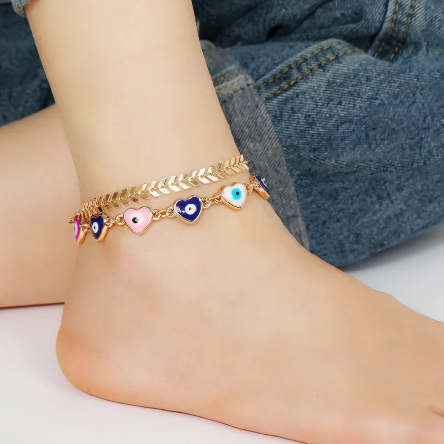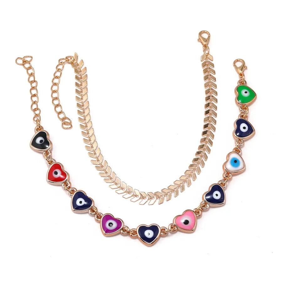 Ladies Fashion Colorful Eye Devil's Eye Ankle Jewelry 2 Pieces/Set Geometric Pattern Alloy Footwear Accessories European Style - Gold 2pcs/set