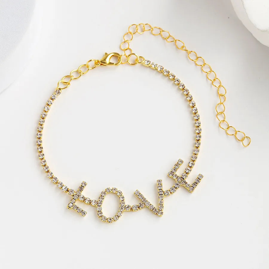 New Love Letter Anklet Sexy Summer Fashion Street Snap Diamond Women's Ankle Bracelet Style Jewelry - Gold