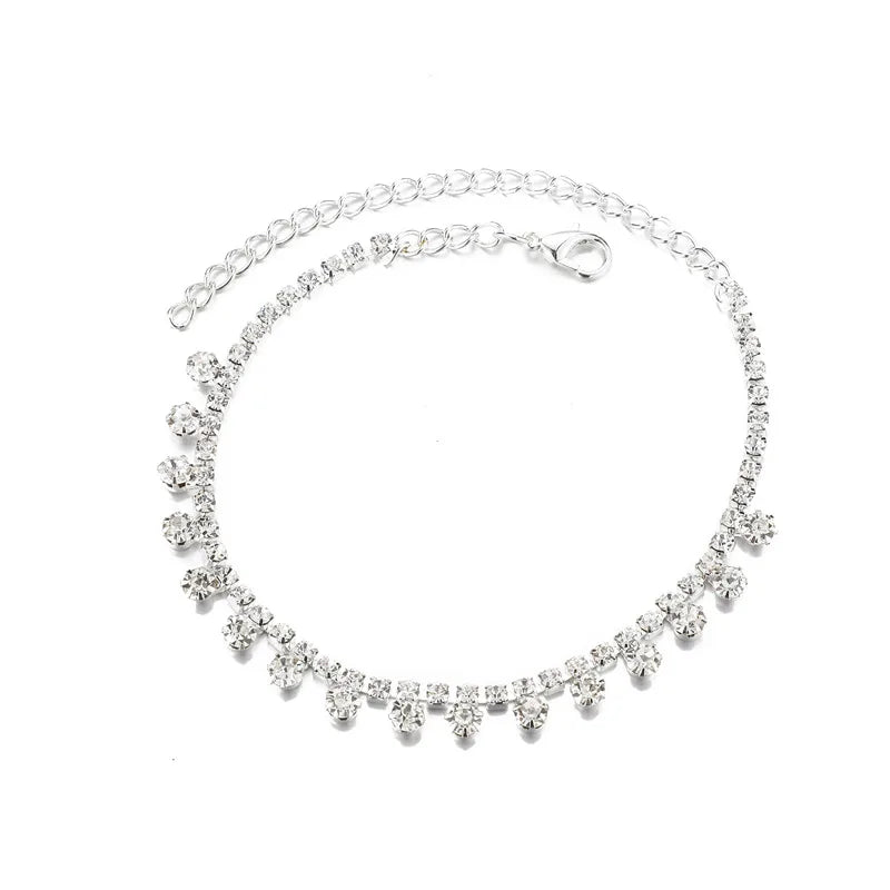 Trendy Round Diamond Embedded Sandals Ankle Chain Ladies Summer Beach Shoes Water Diamond Claws Alloy Geometric Pattern Foot Jewelry - Anklet