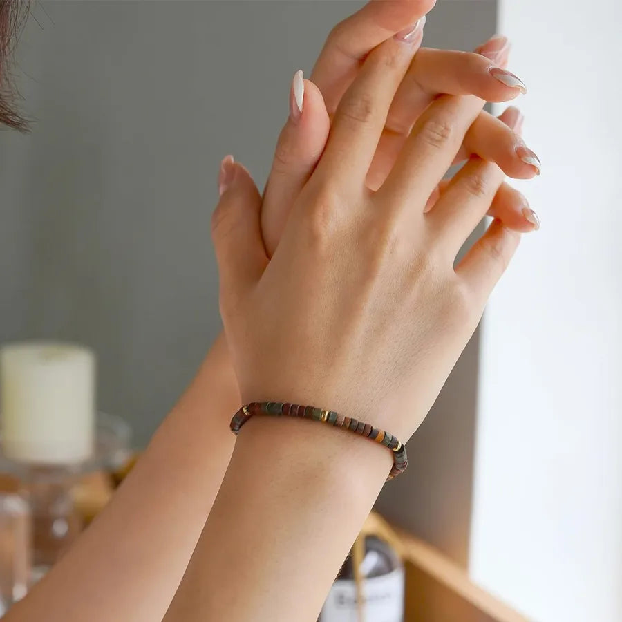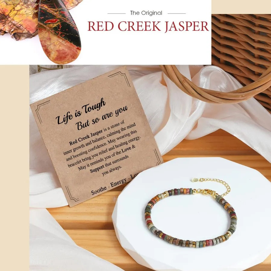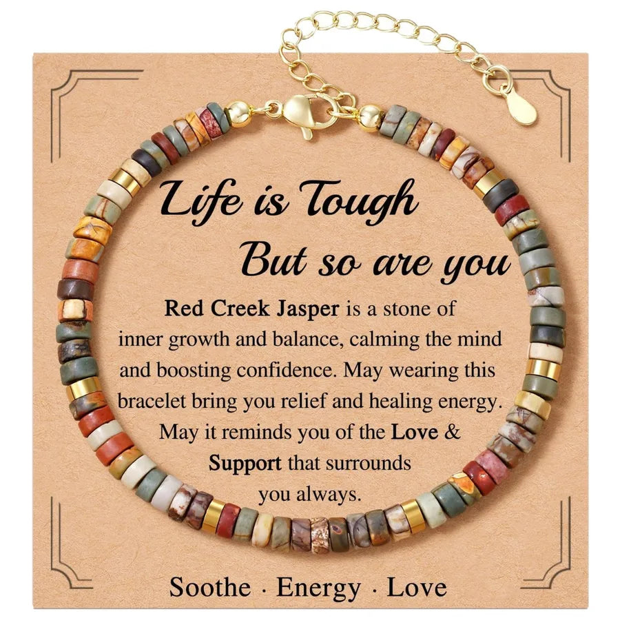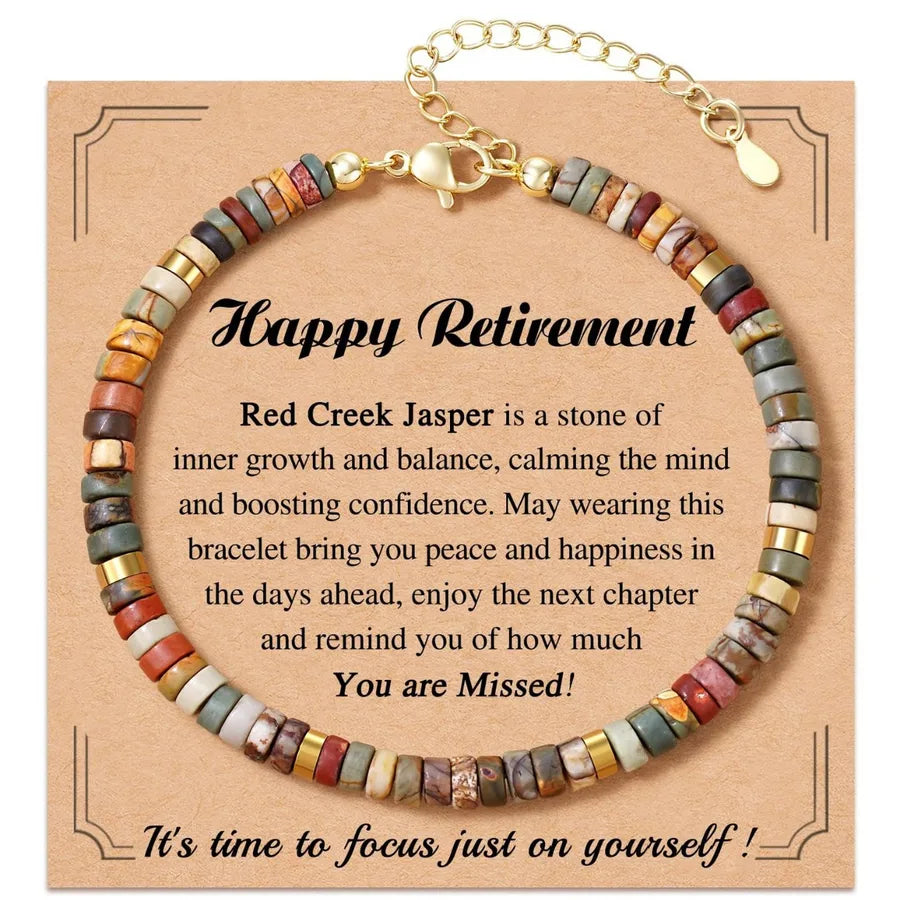 Adjustable Natural Stone Red Amethyst Flat Bead Corner Cut Bracelet 4mm Picasso Motivated Women's Bracelet Business Geometry Pattern - Red Tourmaline Bracelet Happy Retirement Card
