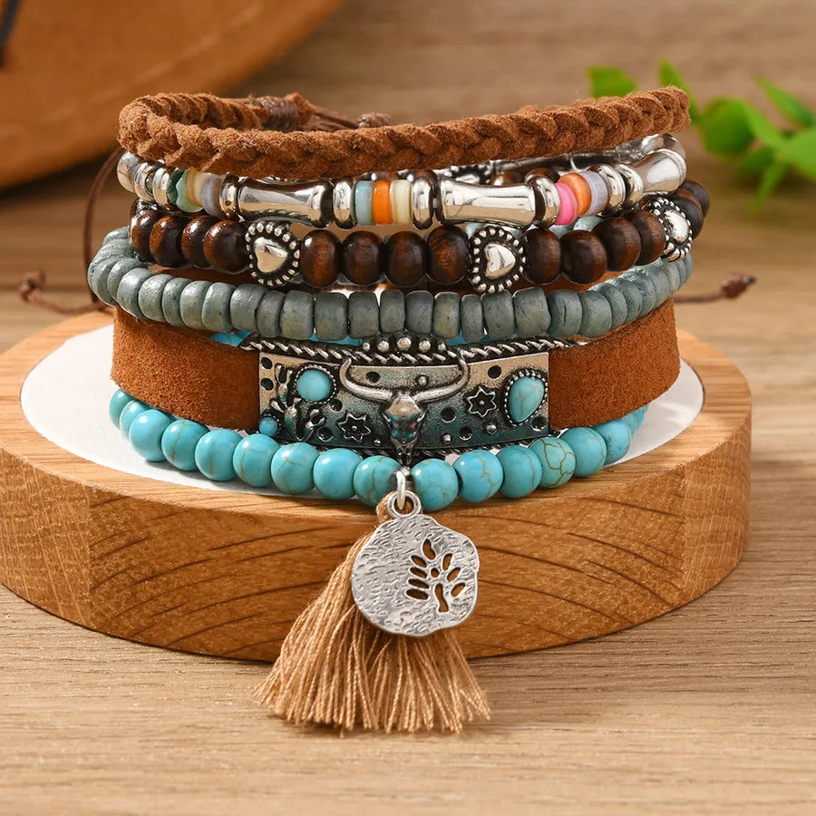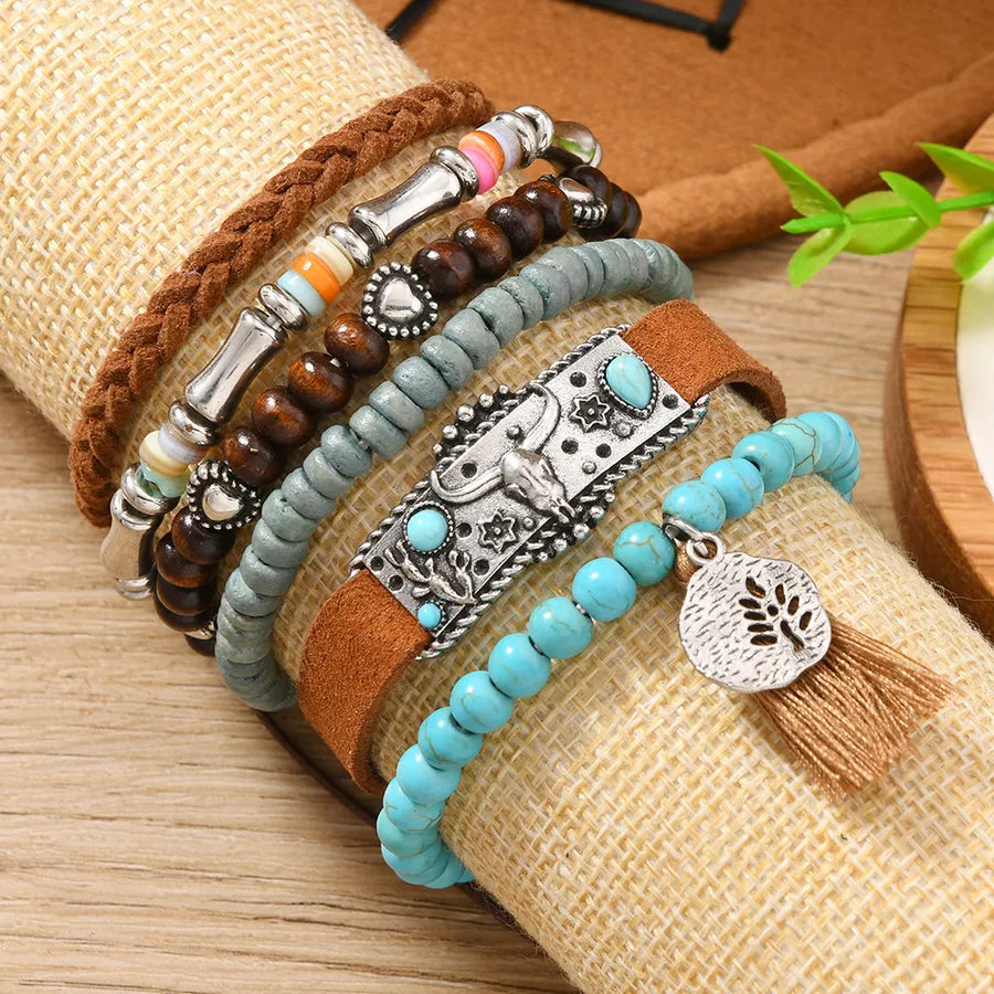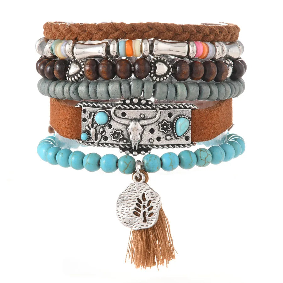 Bohemian Shell Beads Wooden Spacer Soft Ceramic Pearl Leather Unisex Bracelet Handmade Anniversary Gift Vintage Style - Multicolor
