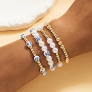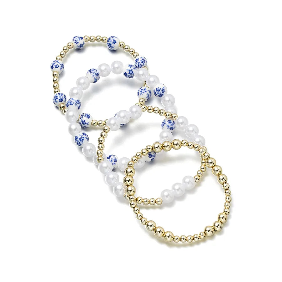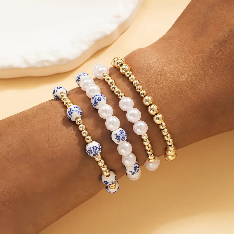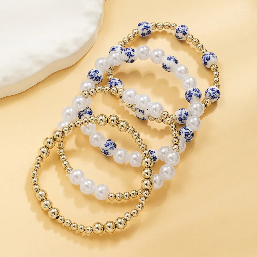 Chinese national style blue and white ceramic imitation pearl CCB beaded elastic ladies bracelet multilayer bracelet jewelry - XY-1779