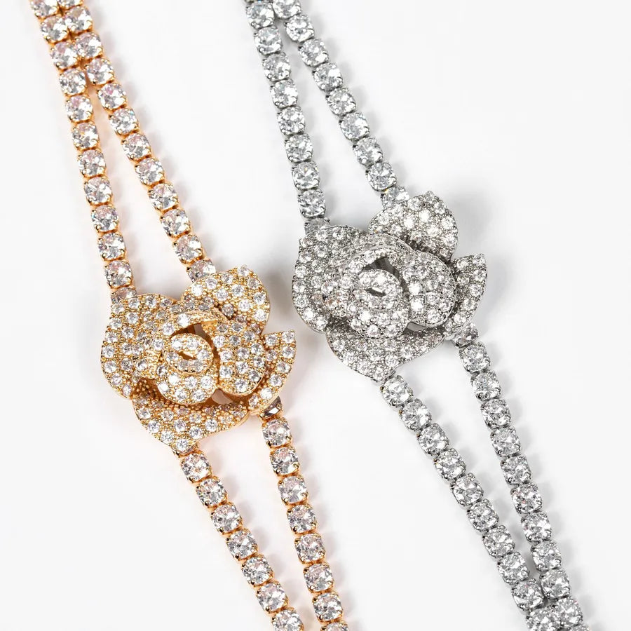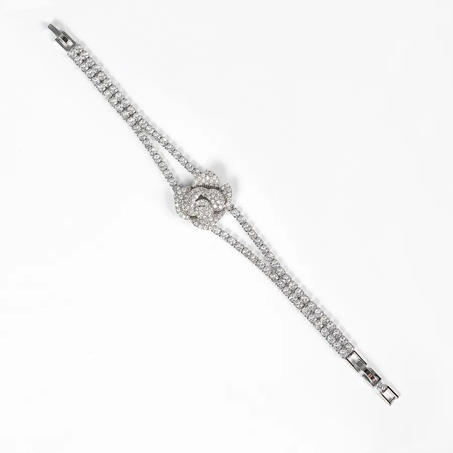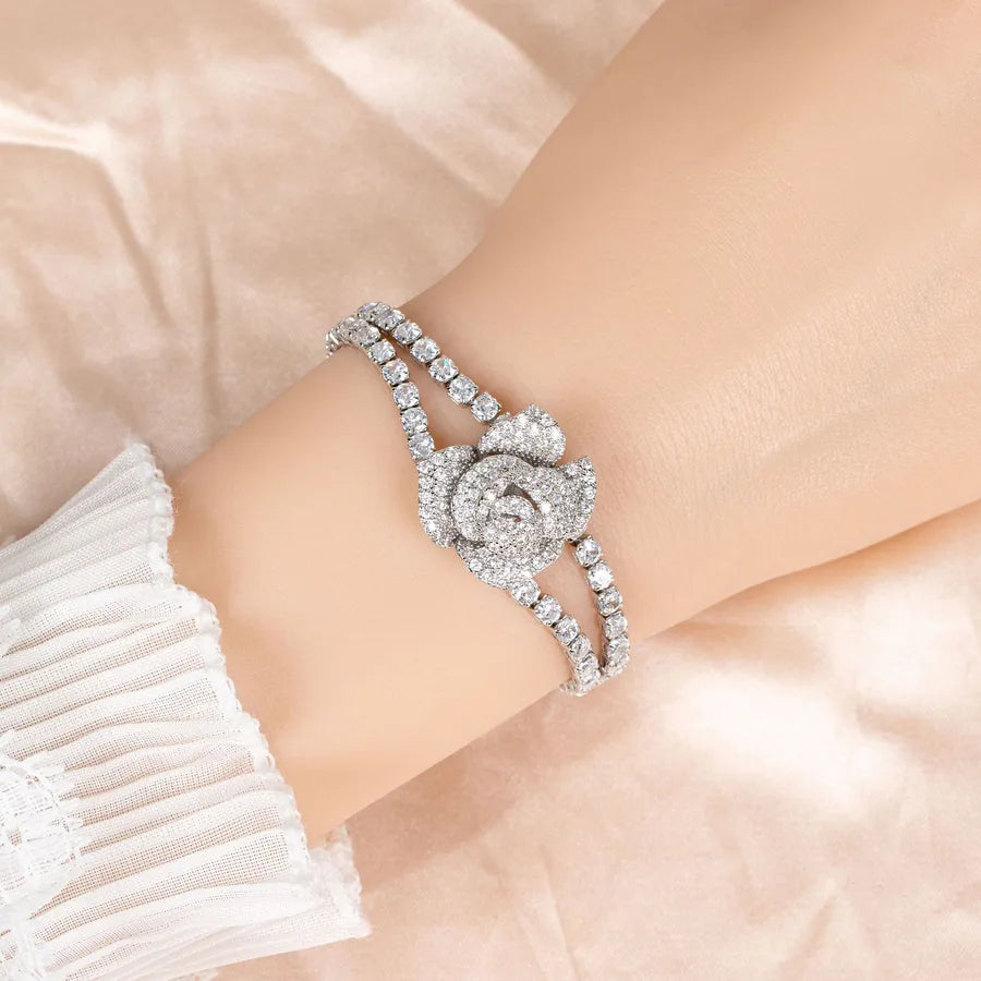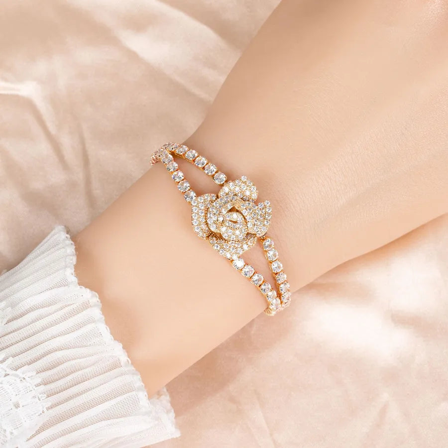 Elegant Bohemian Rose Zirconia Embedded Bracelet For Women Simple Design Birthday Gift Sweet Feminine Stylish Jewelry Accessory - White