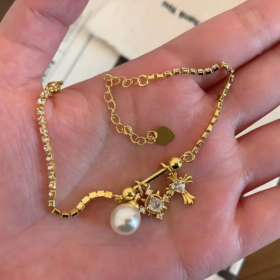 Elegant Classical Cross Alloy Cuban Link Chain Curb Chain Lobster Trigger Clasp Closure Chain & Link Bracelets Wholesale - One Size / Multicolor / F13-36 Gold Cross Bracelet