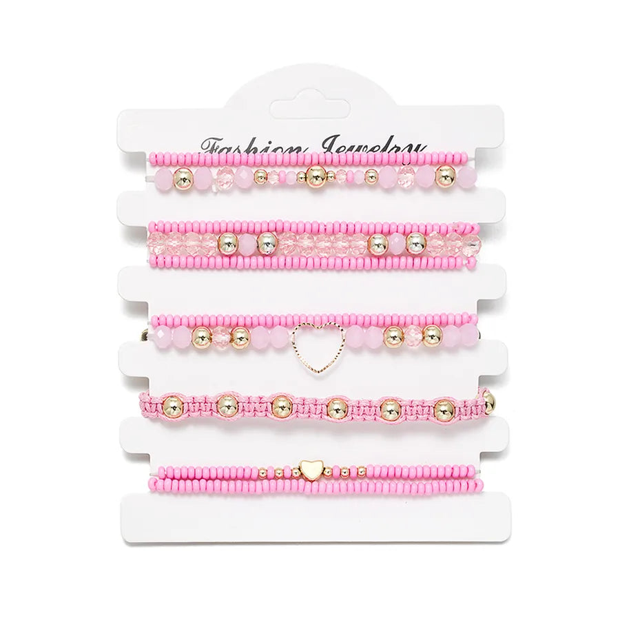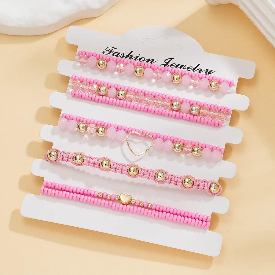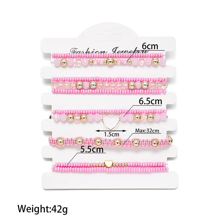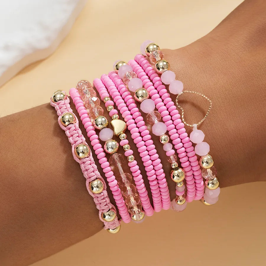 Fashion Elegant Hollow Heart Crystal Beaded Multi-piece Set Elastic Women's Bracelet Mother's Day Gift - XY-360