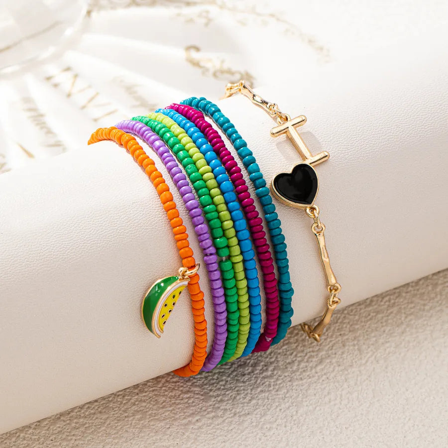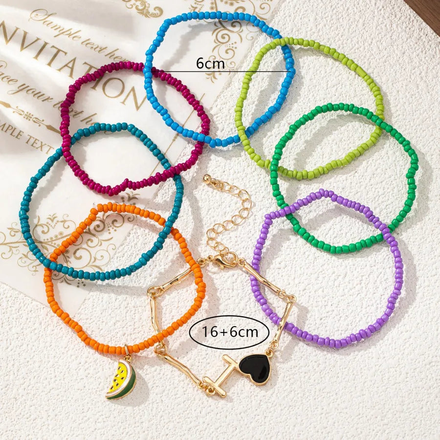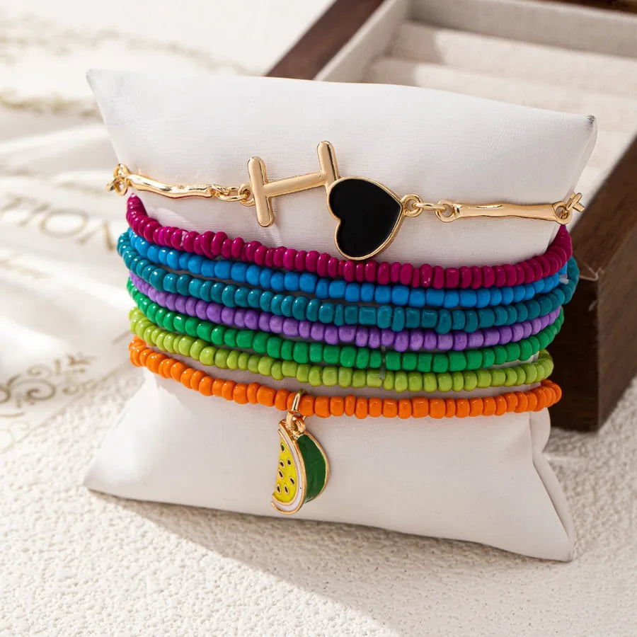 Fashion Temperament Handmade Beaded Chain Hanging Love Pendant Trend New Jewelry Suit Women - Color Bracelet Set