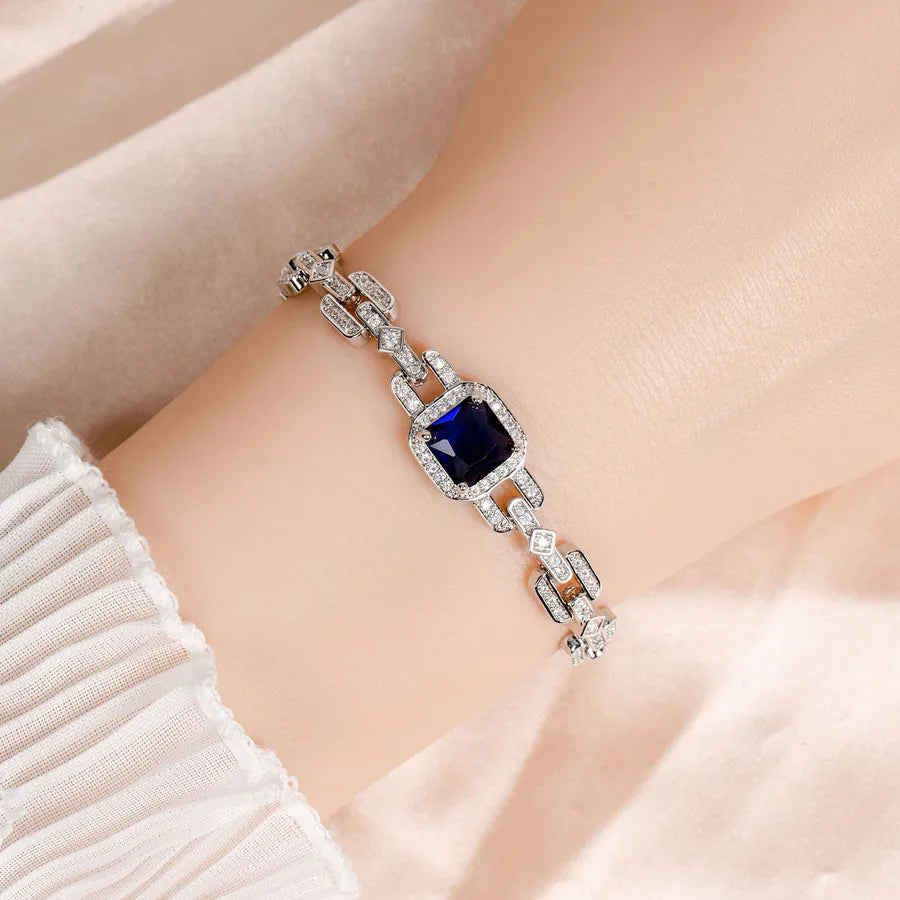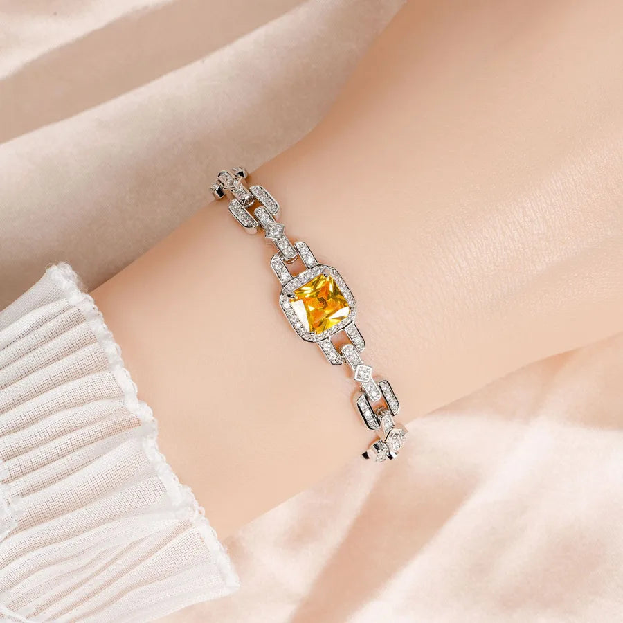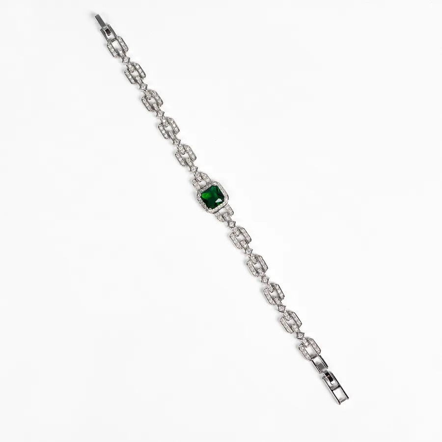 Fashionable Full Diamond Zircon Chain Bracelet Vintage Summer Versatile High-End Feeling Women's Jewelry - White