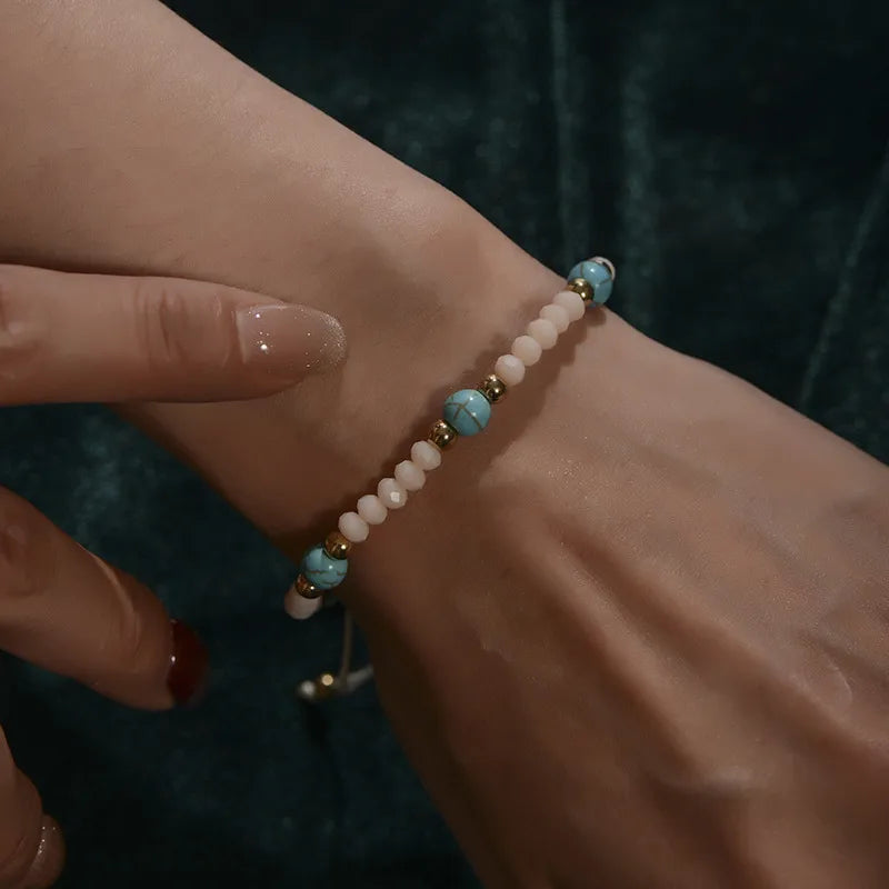 Fashionable Handmade Beaded Bracelet For Women Natural Stone Simulated Geometric Pattern Elegant Versatile Hand Jewelry - NBR044-01