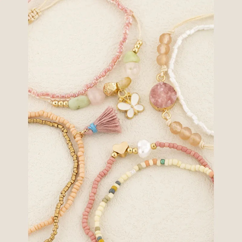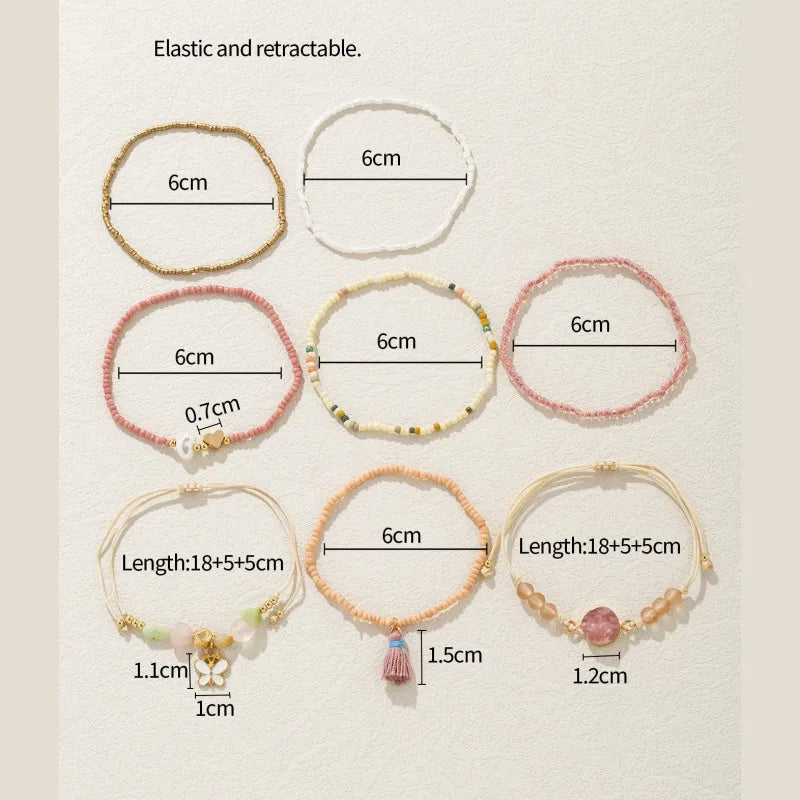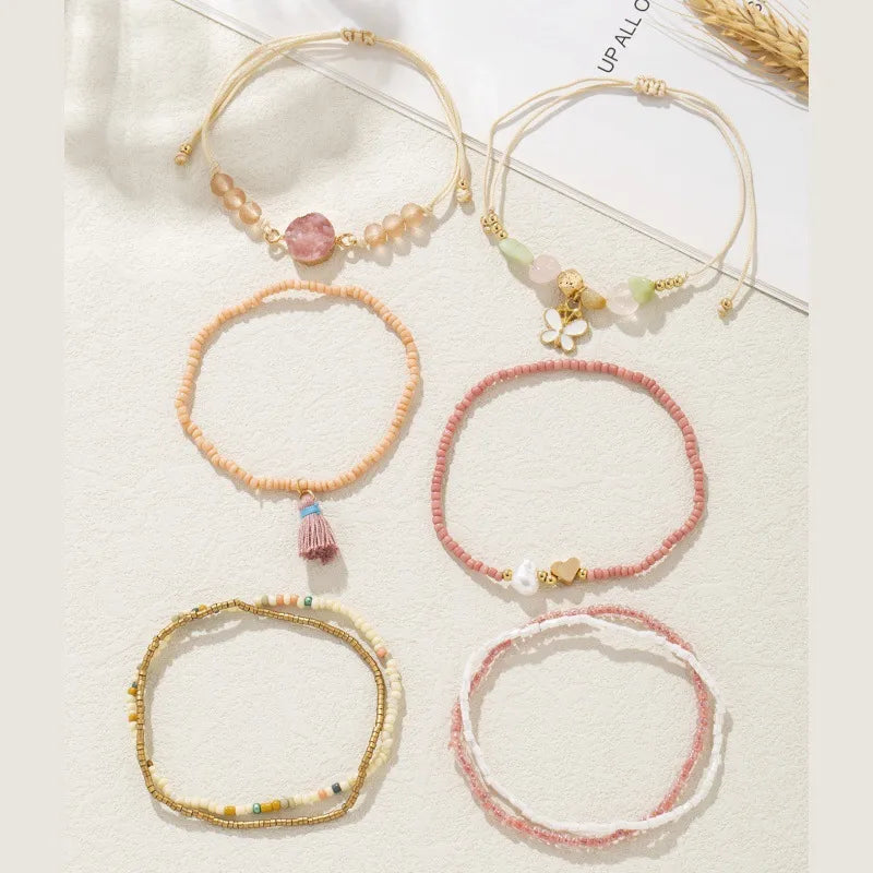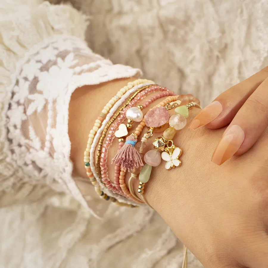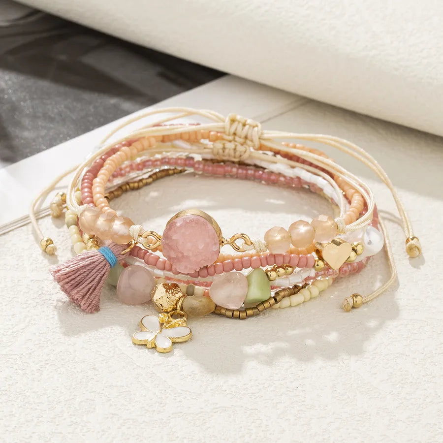 Handmade Adjustable Multi-Element Pendants Beaded Bracelet For Girls Simple Ethnic Style Alloy Material Multi-Layered Bracelet