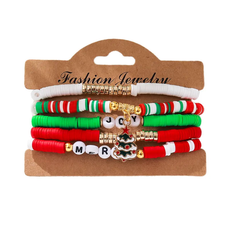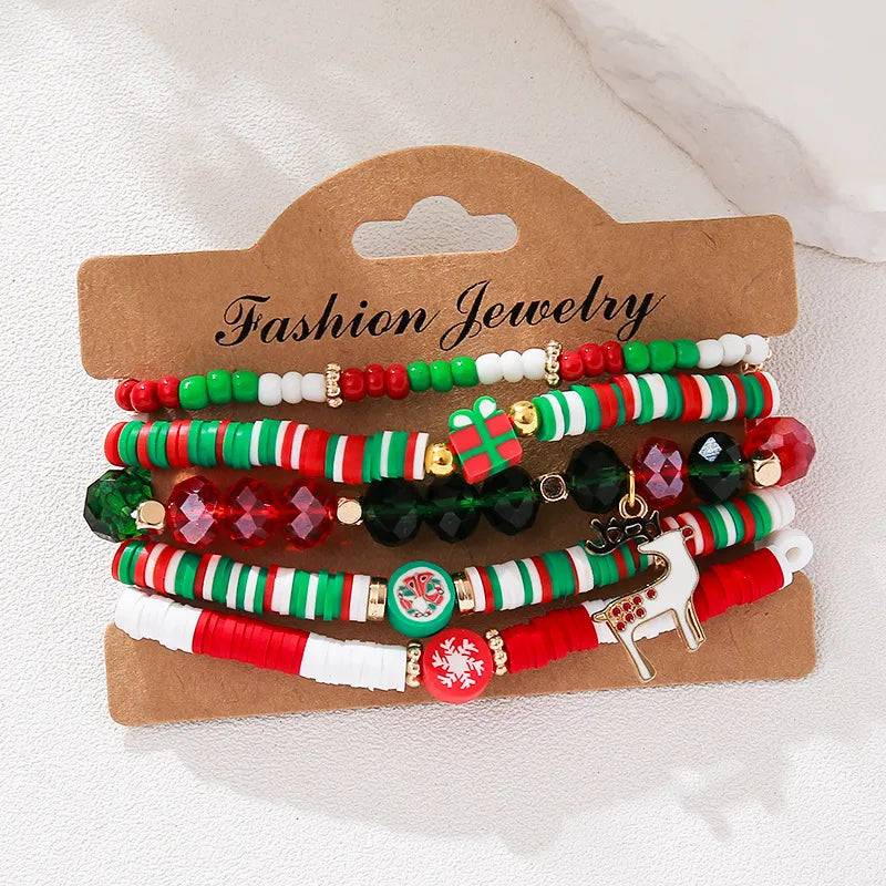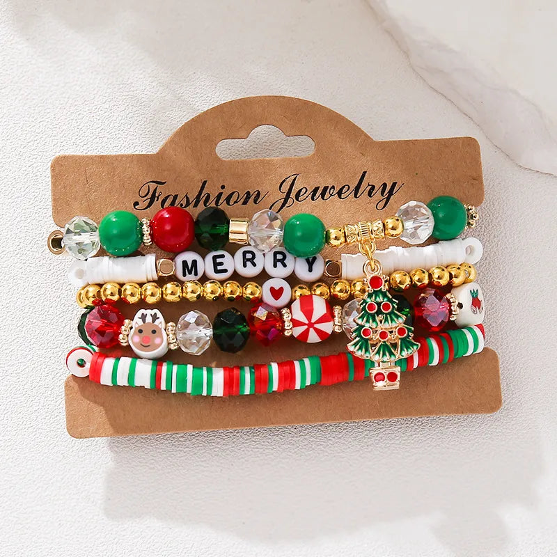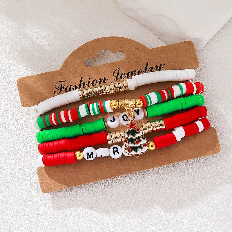 Handmade Christmas Letter Color Block Soft Clay Beaded Bracelet Festival Gift Women's Handmade Wristband Geometric Pattern - XA0146-1