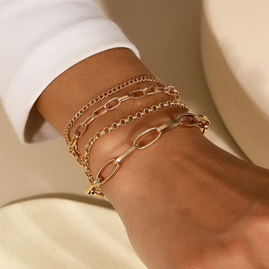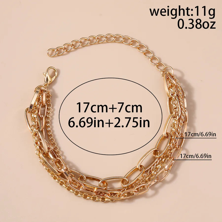 Hip-Hop Basic Exaggerated Solid Color Alloy Handmade Chain Lobster Trigger Clasp Closure Chain & Link Bracelets Wholesale - Average Size / Gold / Multi-layer bracelet