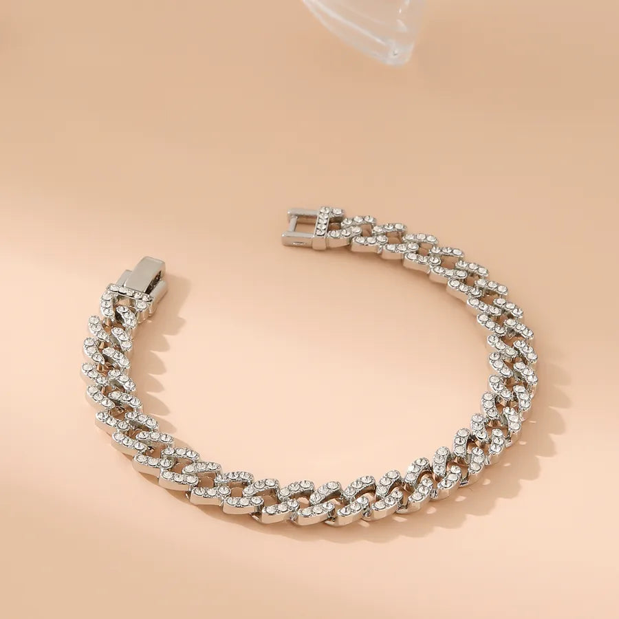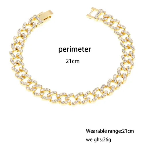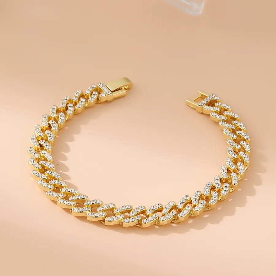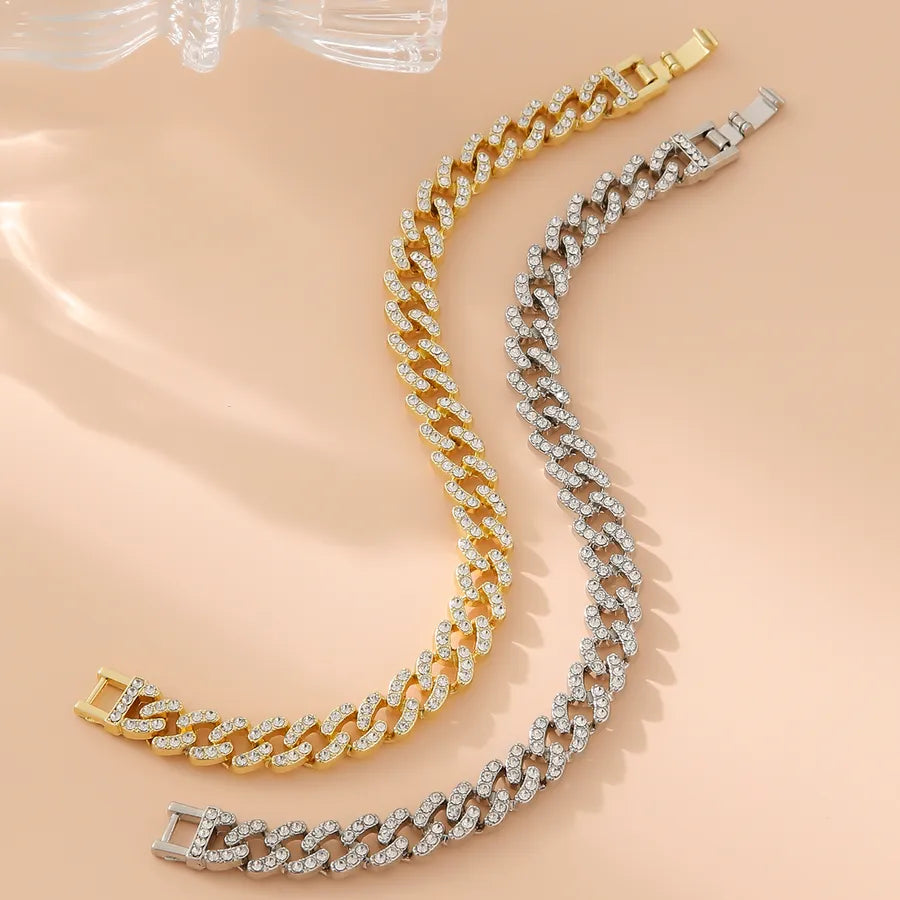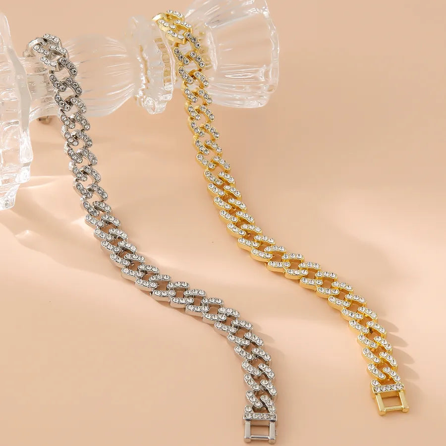 Hip-Hop Exaggerated Rock Geometric Artificial Rhinestones Alloy Wholesale Bracelets - One Size / Gold / 1 Piece Full Diamond Hip Hop Style Thick Chain Bracelet