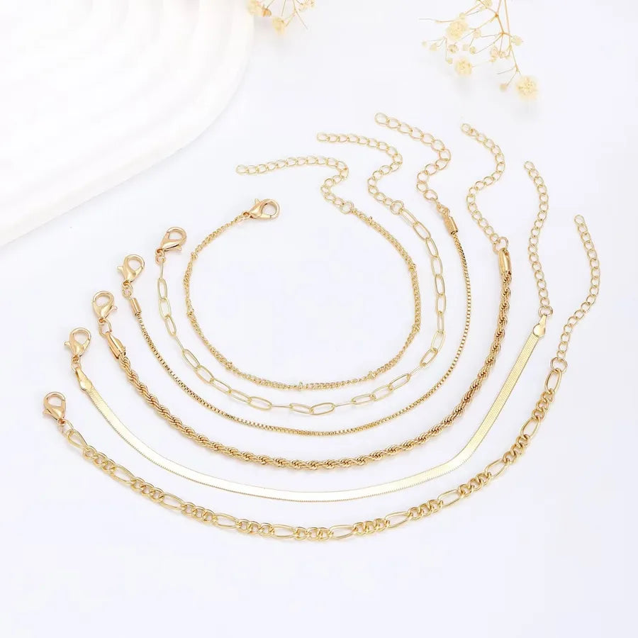 Hip-Hop Solid Color K Gold Plated Alloy Copper Alloy ball chain box chain snake chain OT Clasp Toggle Clasp Closure Spring Ring Trigger Clasp Closure Lobster Trigger Clasp Closure Chain & Link Bracelets Wholesale - One Size / Gold / Qj0298