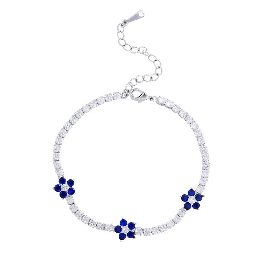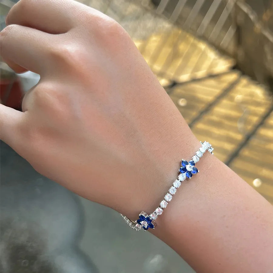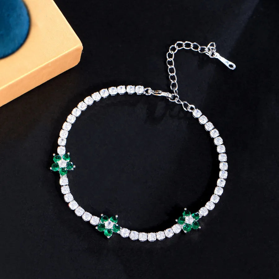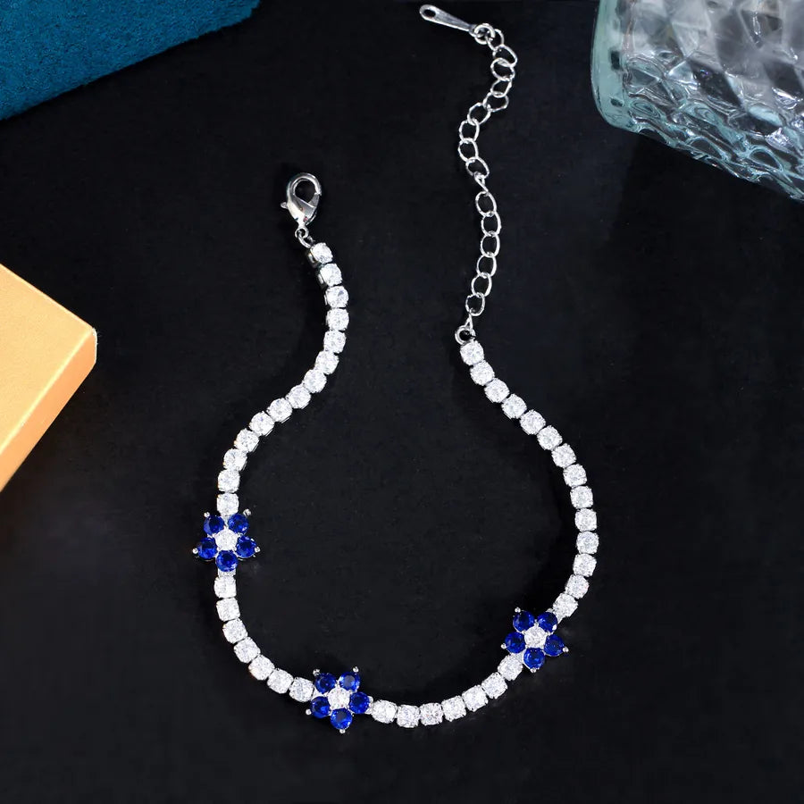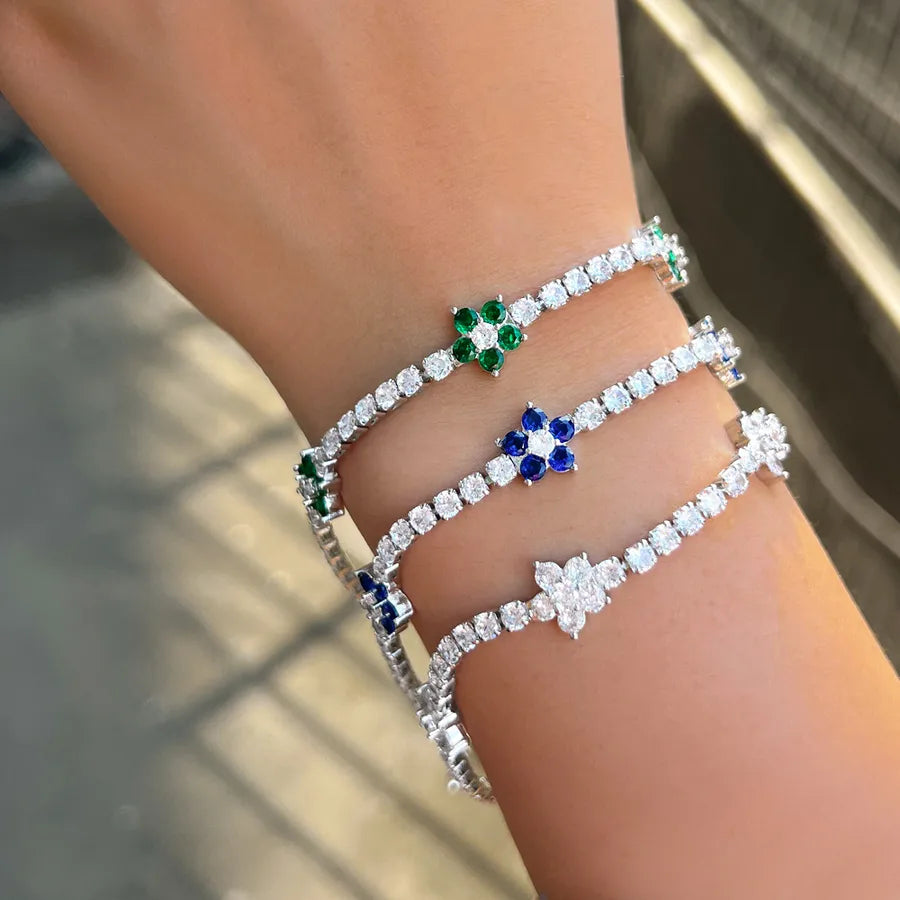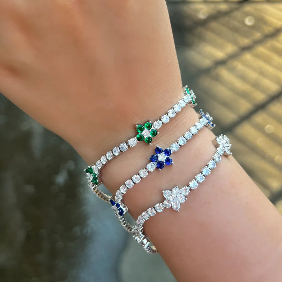 ig style elegant wedding flower copper plating inlay artificial gemstones 14k gold plated rhodium plated tennis bracelet
