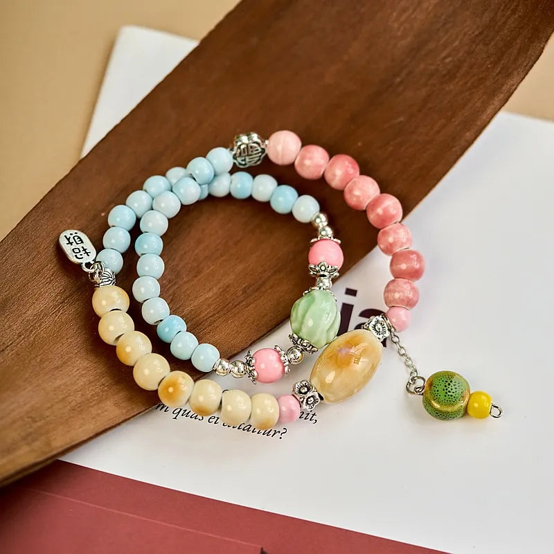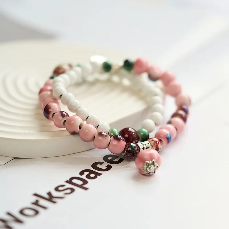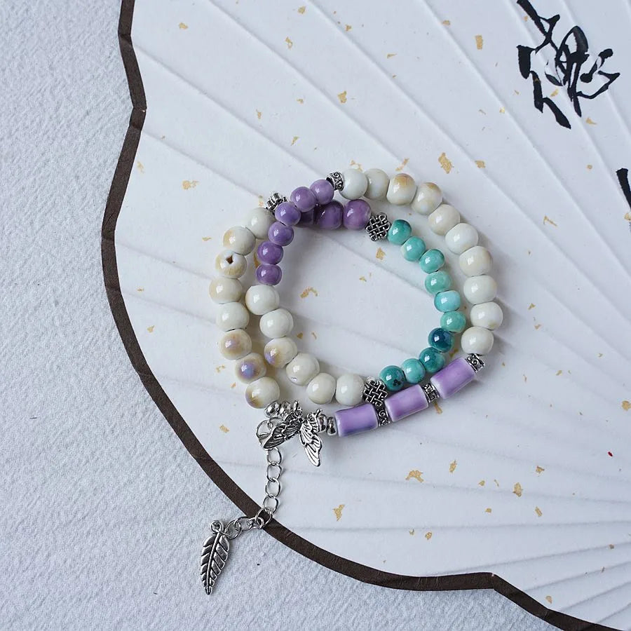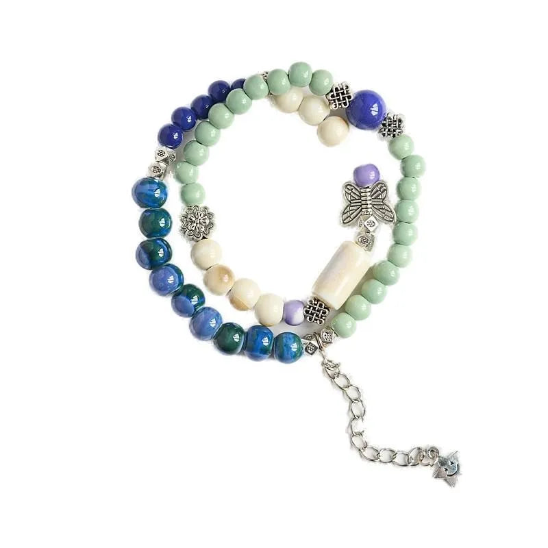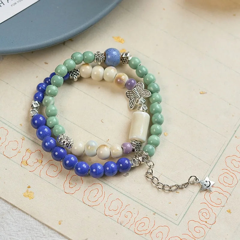 Jingdezhen Ceramic Bracelet Women's Fashion Versatile Double Layer Stackable Hand Jewelry Hand Chain Beads Dopamine Style - 977-01 Cool Breeze