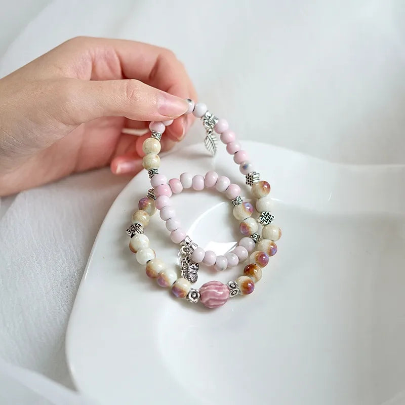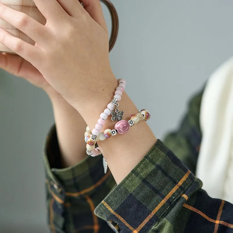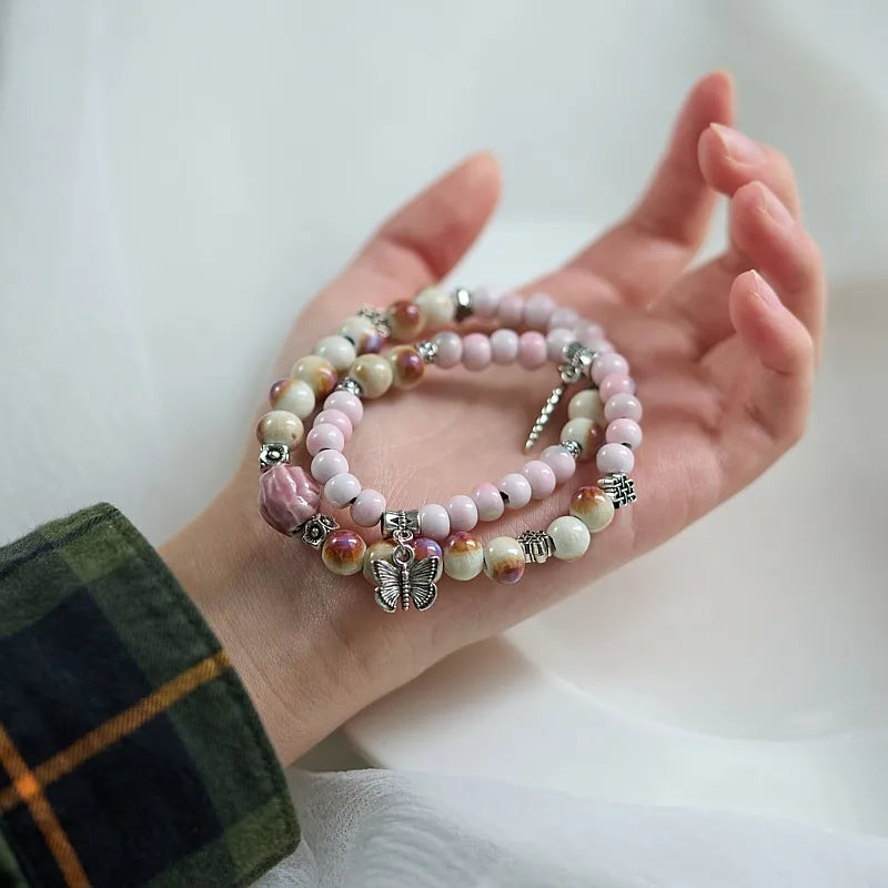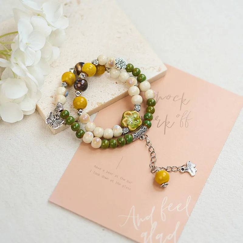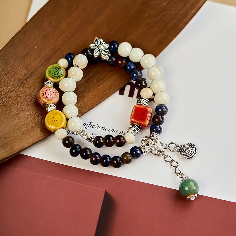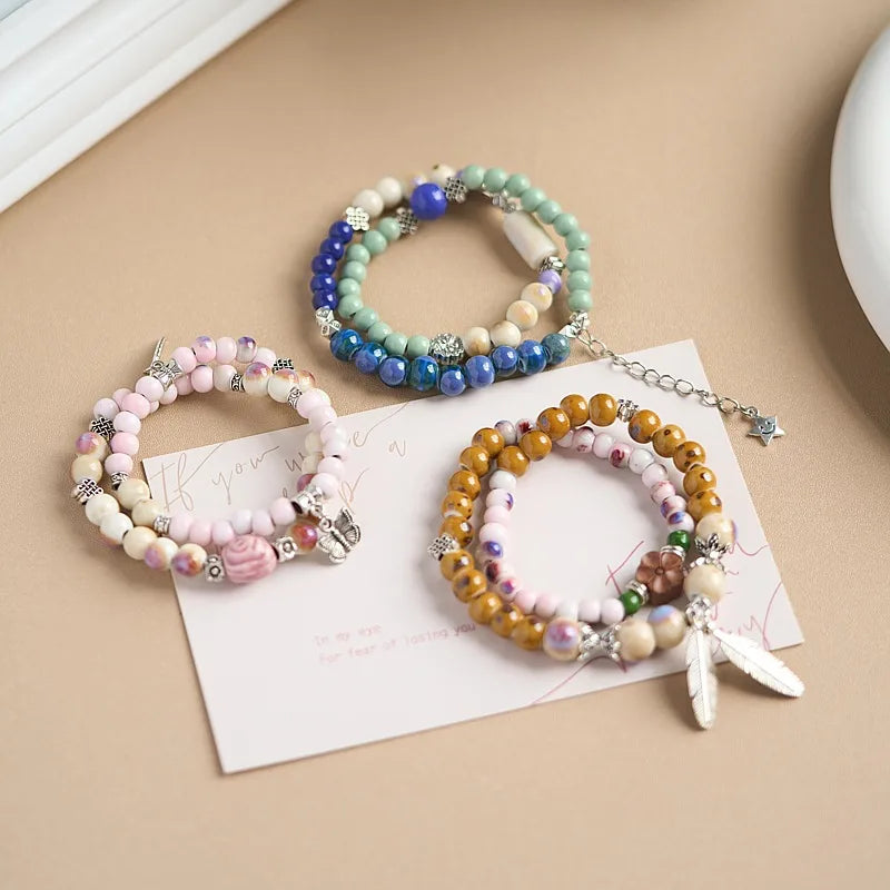 Jingdezhen Ceramic Bracelet Women's Fashion Versatile Double Layer Stackable Hand Jewelry Hand Chain Beads Dopamine Style - 977-01 Cool Breeze