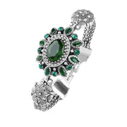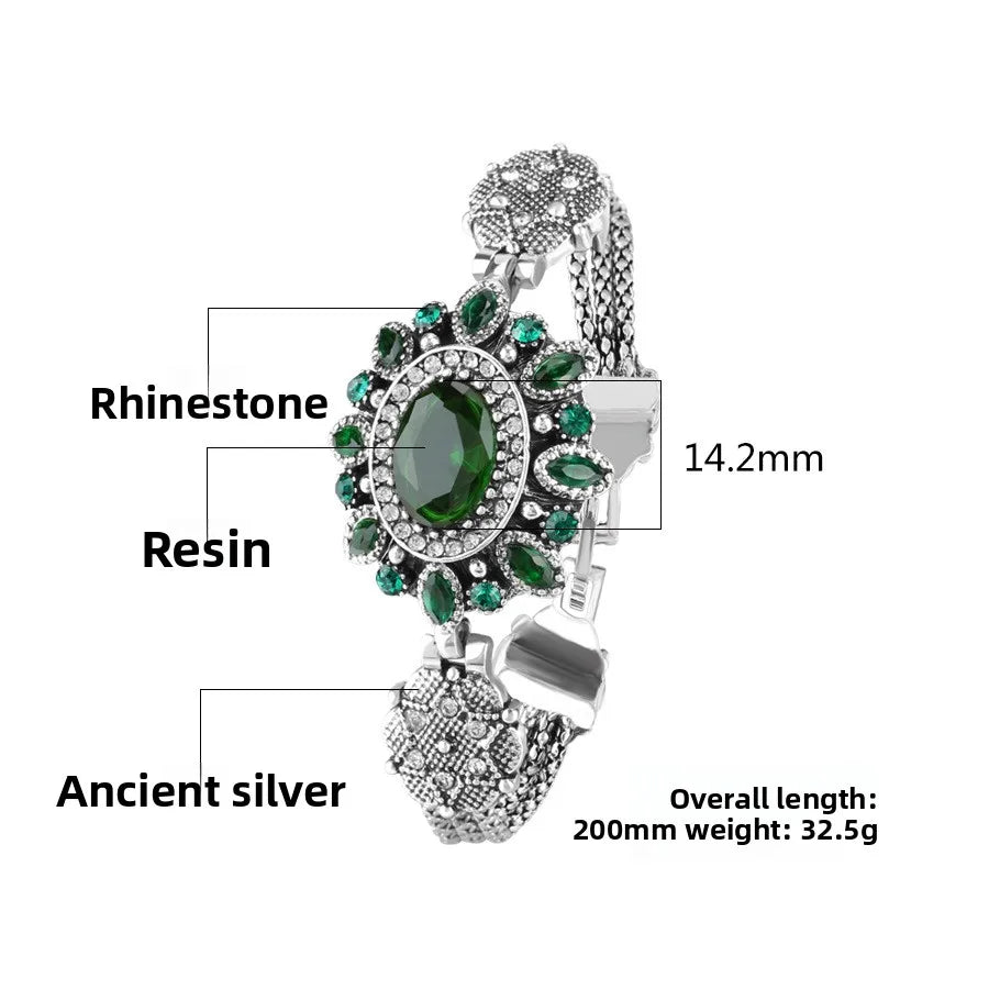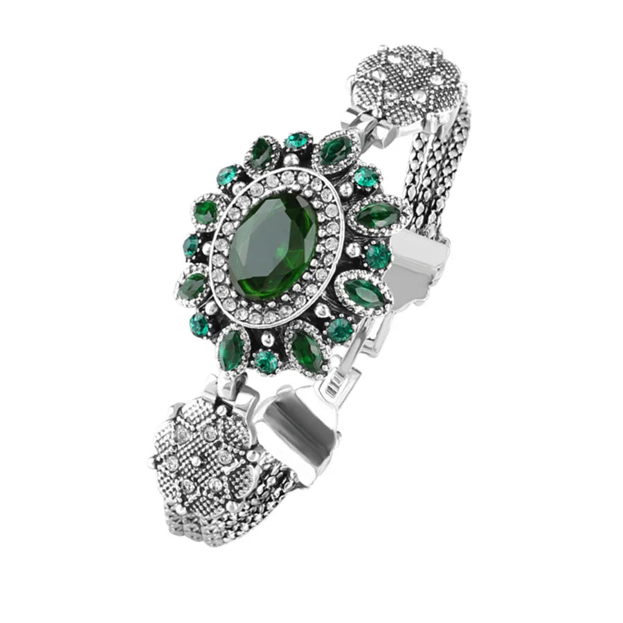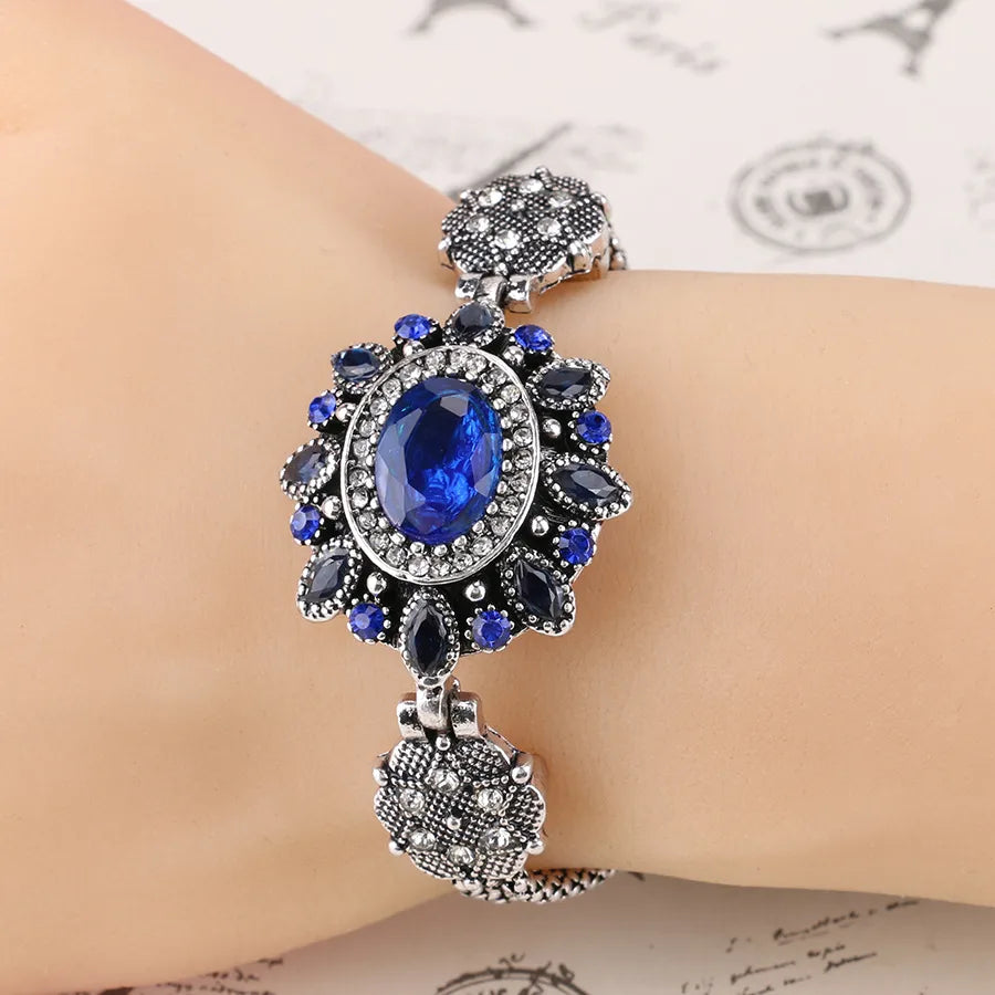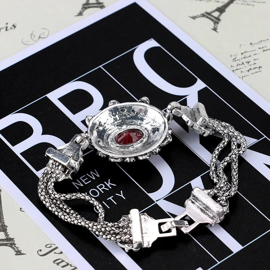 Luxurious Oval Glass Stone Bracelet For Women Fashionable Retro Style Jewelry Alloy Geometric Pattern - Red