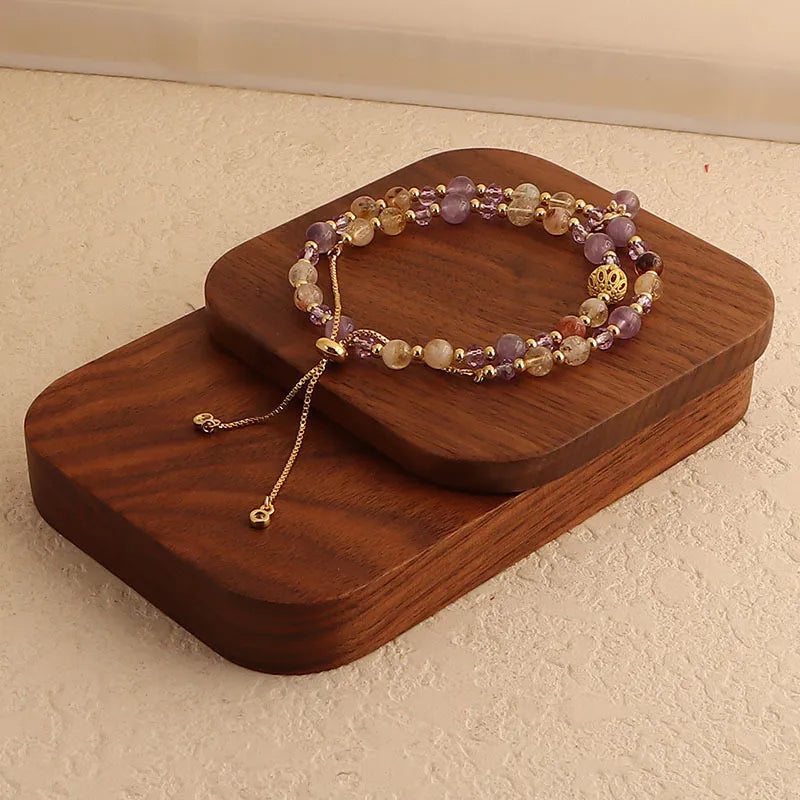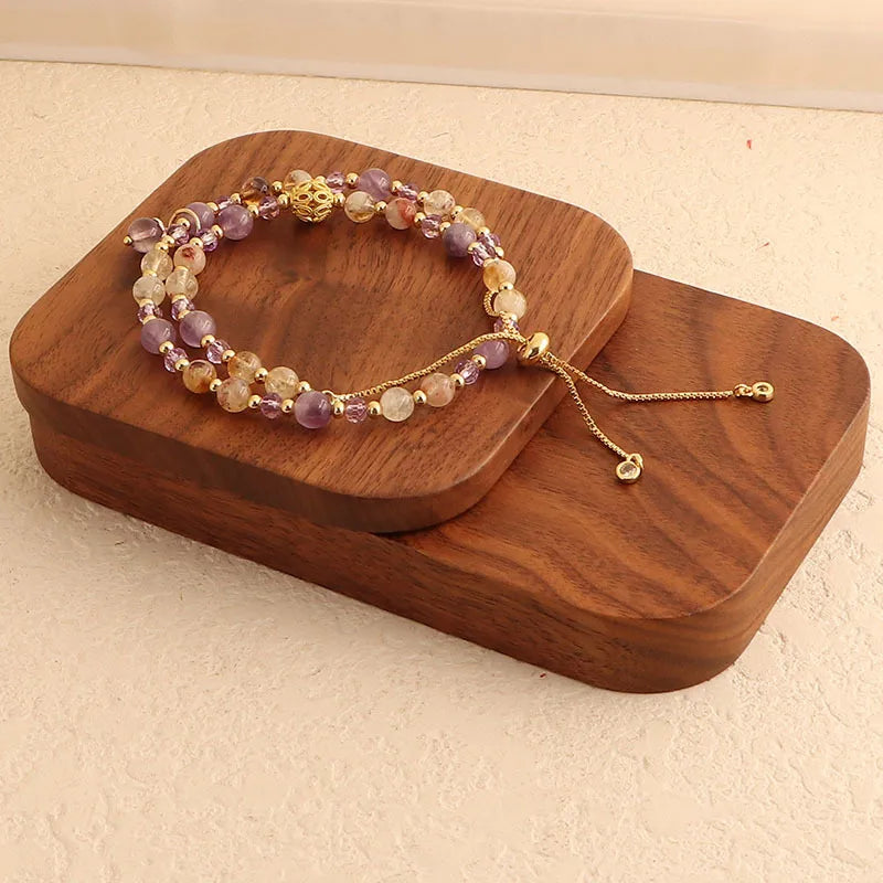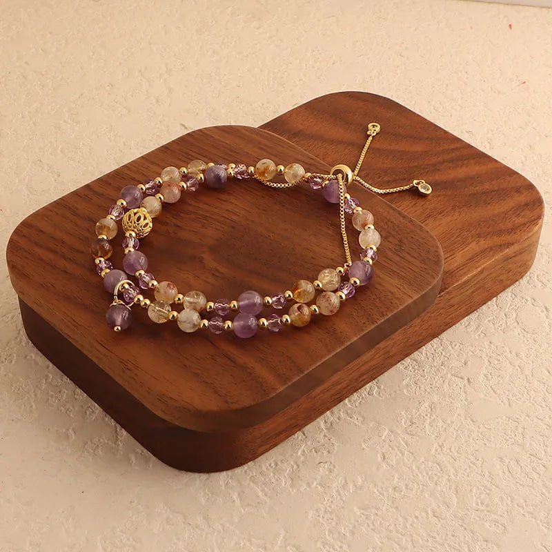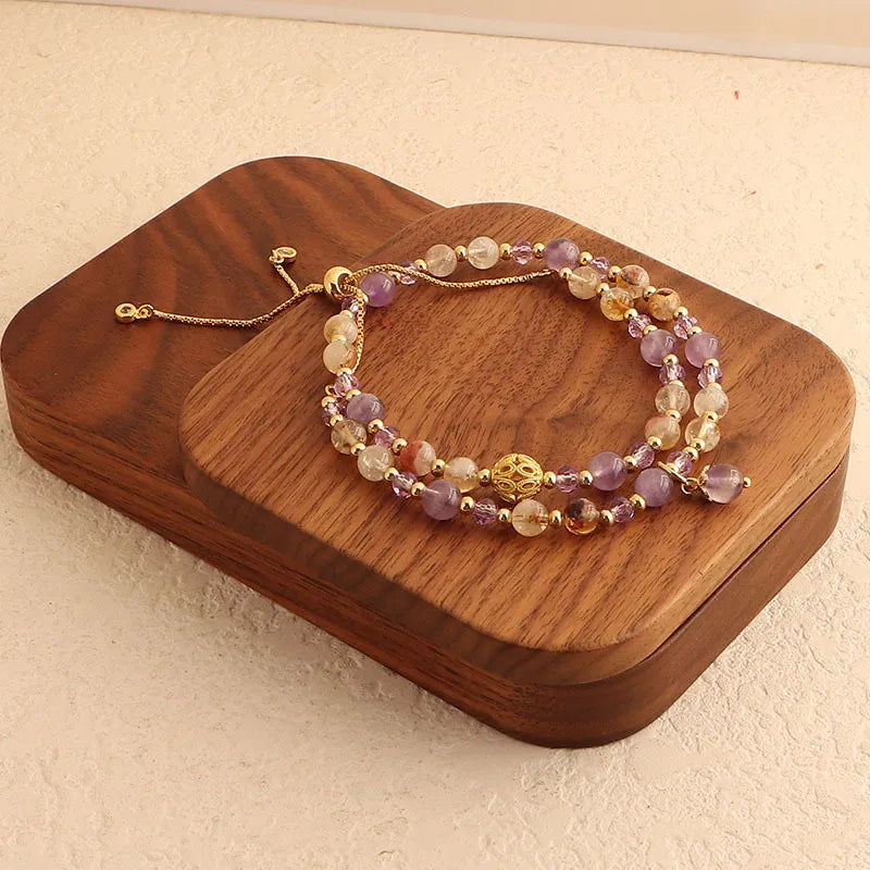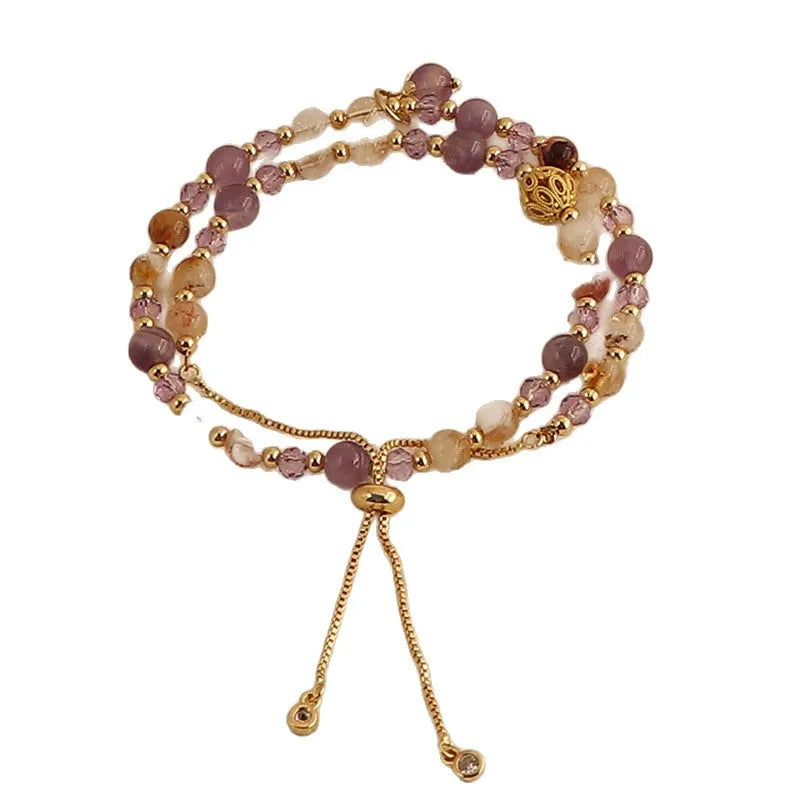 Natural Double Layer Double Ring Lapis Lazuli Crystal Beads Bracelet Fashionable Versatile Women's Jewelry Hand Chain - Amethyst Bracelet