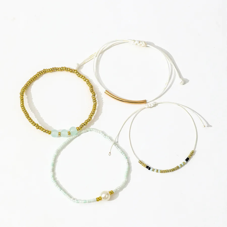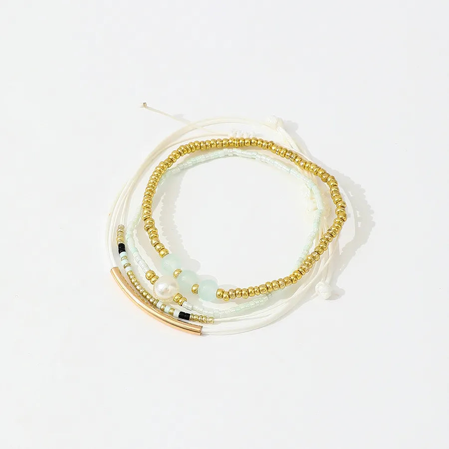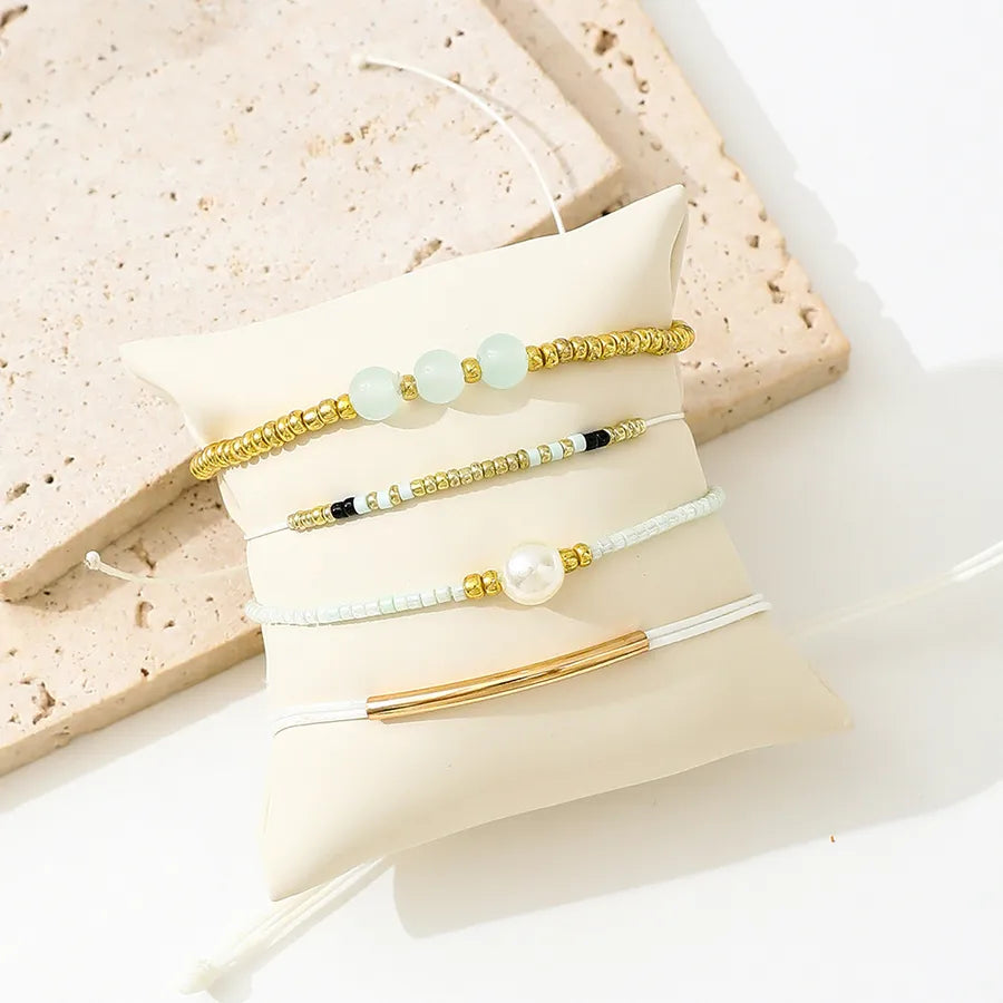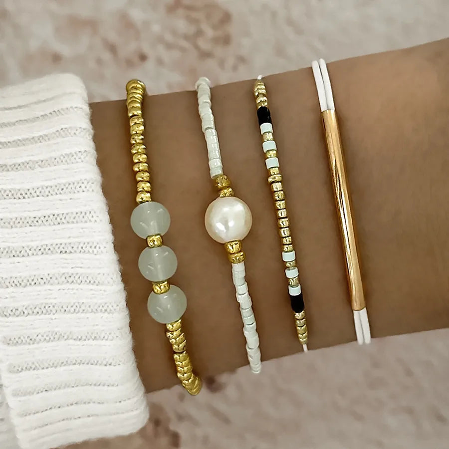 New Imitation Jade Beaded Bracelet Baroque Imitation Pearl Multi-layer Stacked Rice Beads Stretch Bracelet for Women - S1630