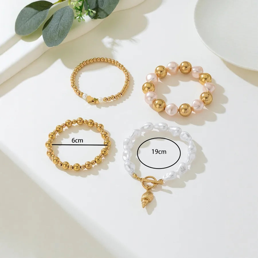 New Pearl Shell Pendant Beaded Bracelet Set Women's Jewelry Vacation Gift Layered Band Design Acrylic Country Style Any Occasion - S025-1