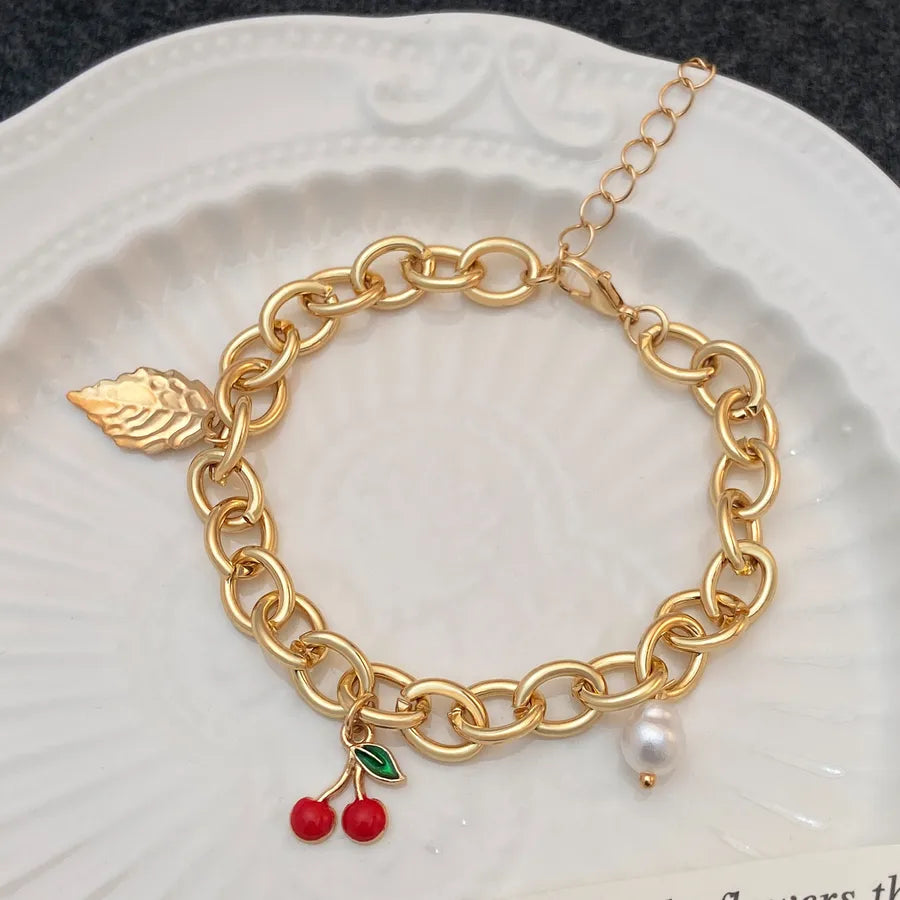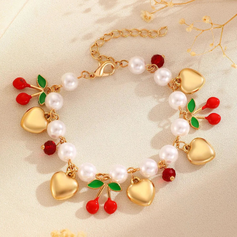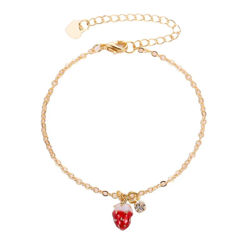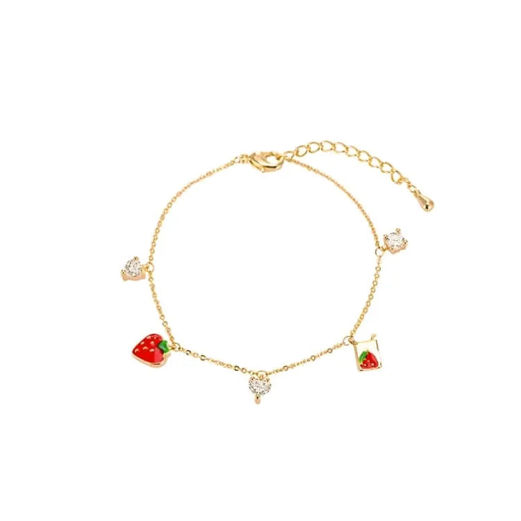 New Style Simple Strawberry Zircon Heart Student Bracelet Best Friend Gift Fresh And Sweet Alloy Fruit And Love Pattern - KC Gold WG0-0872
