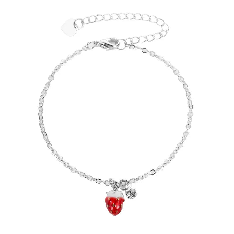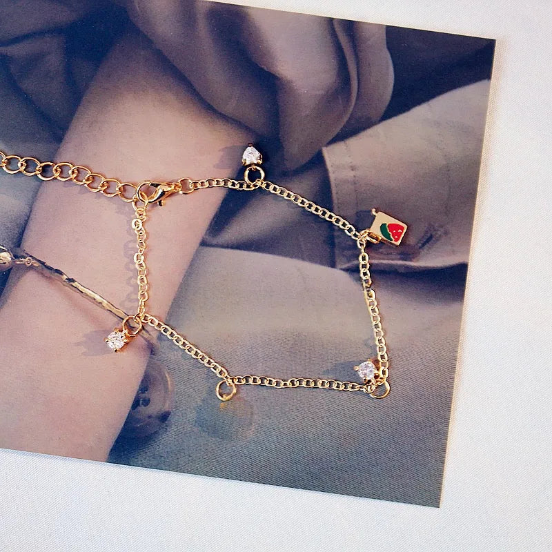 New Style Simple Strawberry Zircon Heart Student Bracelet Best Friend Gift Fresh And Sweet Alloy Fruit And Love Pattern