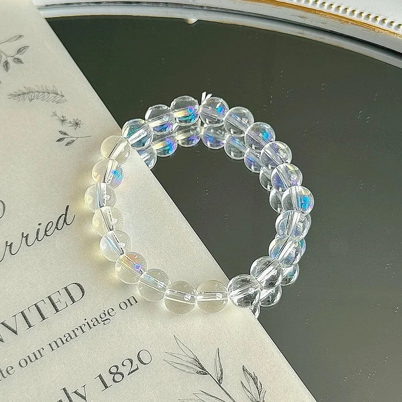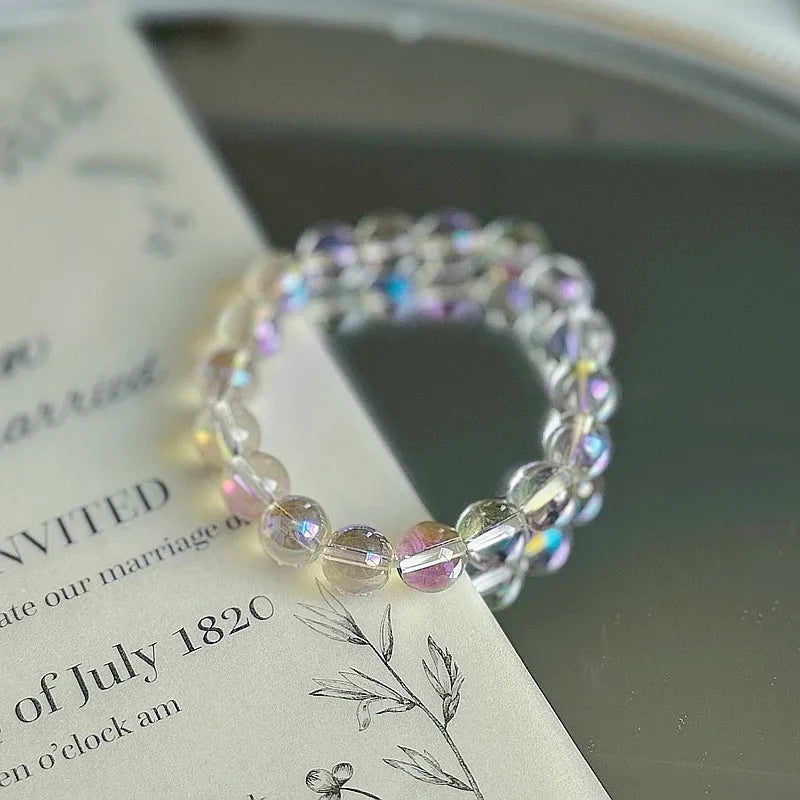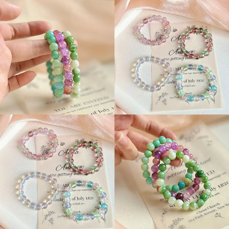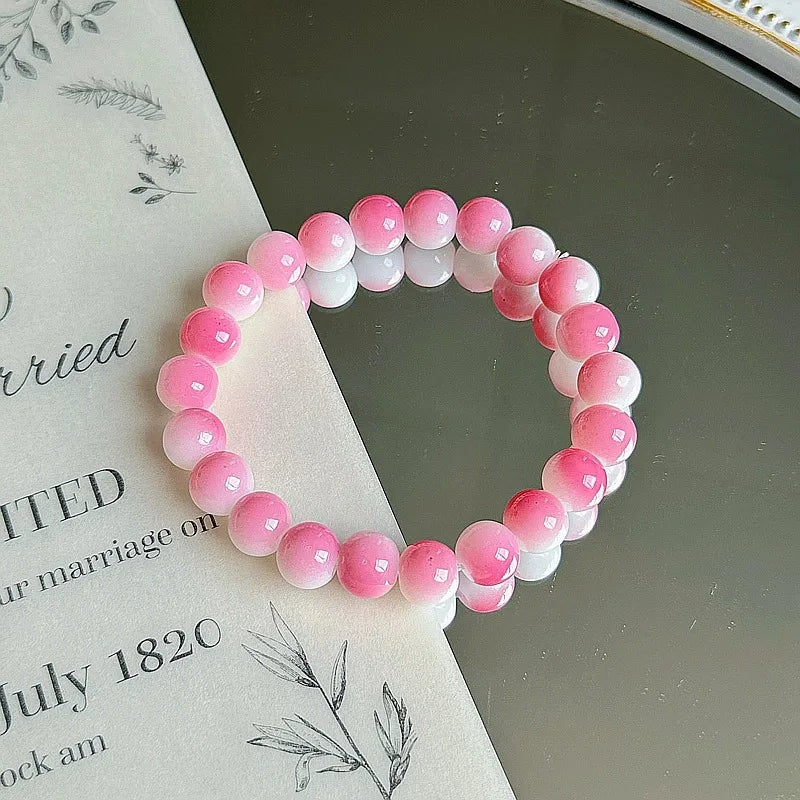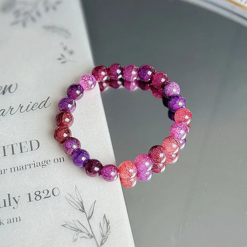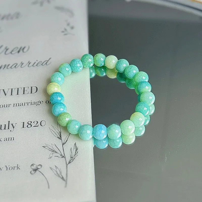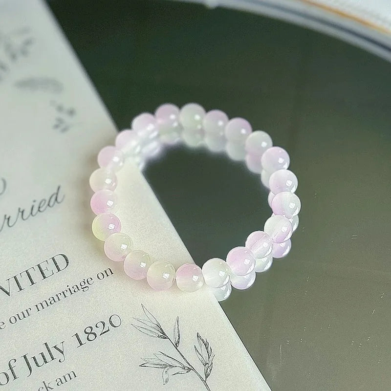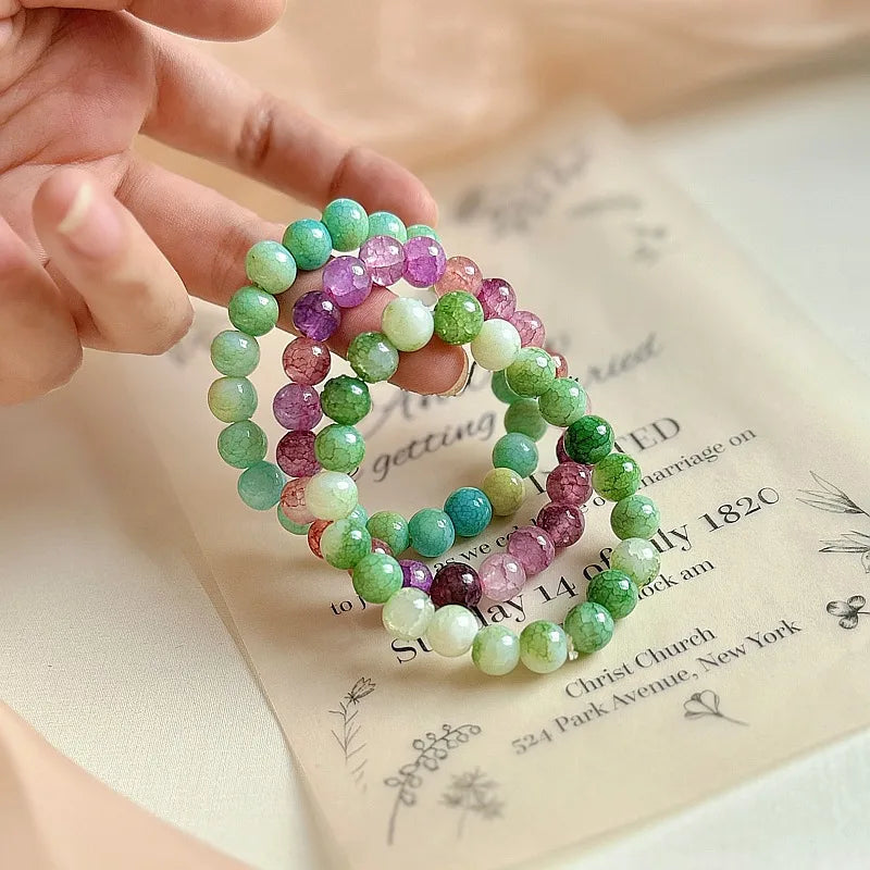 Pink Purple Crystal Bracelet Women's Gradual Gradient Playfulness Friend Bracelet Student Stress Relief Ceramic Geometric Pattern - 574A Little Lime 8mm